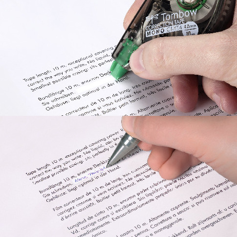 Dispozitiv de corectare rapida si precisa, ideal pentru documente scrise de mana sau tiparite. Asigura o acoperire uniforma, fara a lasa urme. Datorita „Tehnologiei de acoperire Tombow”, banda se aplica usor si curat si nu necesita timp de uscare - se poate scrie peste ea instantaneu si curat.