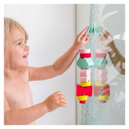 Ofera-i micutului tau primele forme de insirat care ii vor dezvolta abilitatile si il vor distra in timpul baii! Quut Beedi sunt forme pentru insirat din spuma moale EVA, in culori vesele si luminoase. Setul include: sapte forme din spuma EVA, un snur pentru insirat cu capat din silicon, o ventuza pentru agatat pe perete. Cei mici se vor distra in timpul baitei insirand formele colorate pe snur in diferite combinatii si apoi isi vor putea atarna creatia pe perete folosind ventuza inclusa in set, pentru a da o nota vesela baii. Formele plutesc pe apa si se lipesc de pereti. Datorita formei si dimensiunii lor mari, sunt usor de insirat pe snurul inclus, fiind perfecte pentru mainile mici ale copiilor. Setul este fabricat din spuma EVA, un material elastic si moale, nu contine BPA, ftalati si latex si este reciclabil. Piesele nu absorb apa, ceea ce reduce riscul producerii mucegaiului si bacteriilor. Capatul snurului si ventuza sunt realizate din silicon. Instructiuni de utilizare: clatiti piesele bine dupa fiecare utilizare si puneti-le intr-un loc unde se pot usca complet! Curatati-le cu un detergent usor daca este necesar! Setul incurajeaza abilitatile motorii fine, coordonarea ochi-mana, imaginatia, jocul creativ, perceptia vizuala, abilitatile de recunoastere a formelor si culorilor, abilitatile de insirare, si le asigura copiilor un timp distractiv in timpul baii. Toate produsele Quut nu contin BPA, ftalati si latex, sunt reciclabile si respecta normele europene si internationale de siguranta a jucariilor si a folosirii substantelor chimice. Jucariile Quut sunt produse cu scopul de a adauga distractie si frumusete in viata copiilor si a parintilor. Concepute cu materiale durabile si de cea mai inalta calitate, produsele Quut sunt construite pentru a rezista an de an. Castigatoare a multor premii de design, produsele Quut sunt total unice prin aspectul lor. Dimensiune forma mica (rotunda): 4 cm (diametru) x 1 cm; dimensiune forma mare: 8 x 4 x 2.5 cm Dimensiune cutie: 20 x 9 x 6 cm Varsta recomandata: 10 luni+
