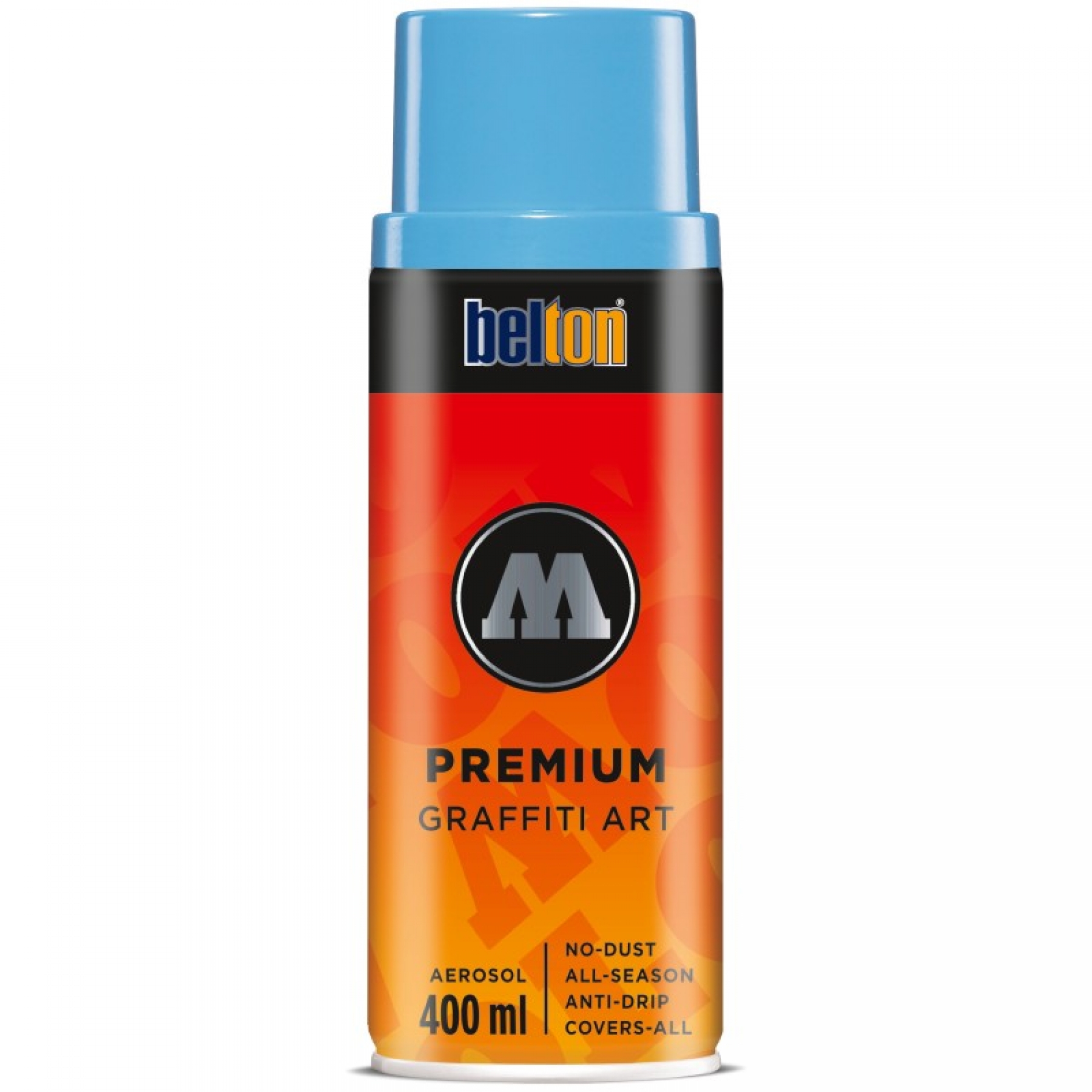 Belton Premium este primul spray optimizat pentru Street Art, dezvoltat de artiști, pentru artiști. Declarat de artiști urbani din toată lumea, cel mai fiabil spray, Belton Premium se remarcă prin culorile cu pigmenți 4x Auto-K™ ce garantează o acoperire perfectă și culori vibrante.Noile spray-uri Belton Premium sunt dotate cu tehnologia Soft Vari Valve și formule îmbunătățite ale vopselelor.- Formulă cu pigmentare puternică (pigment procesat prin multiple operațiuni mecanice) - Efect semi-gloss - Opacitate ridicată - Permanent - Cea mai înaltă rezistență la lumina ultravioletă și intemperii - Uscare rapidă și adeziune ridicată la suprafața pe care este pulverizat (compuși nitro-alchidali) - Pentru majoritatea suprafețelor - Pentru uz în interior și exterior - 252 nuanțe de culoare - Presiune constantă până la terminarea conținutului - Tehnologii MOLOTOW patentate: anti-drip™, no-dust™, covers-all™, all-season™ (de la -10°C până la +50°C) - Identificare ușoară a culorilor, mulțumită tehnologiei DoubleFunctionCap în culori reale - Valvă cu sistem unic Flowmaster - Capete de pulverizare interschimbabile - Funcționare optimă cu tehnica de aerograf - Compatibil cu spray-urile și markerele MOLOTOW din alte game - Fabricat în Germania - Cantitate: 400ml