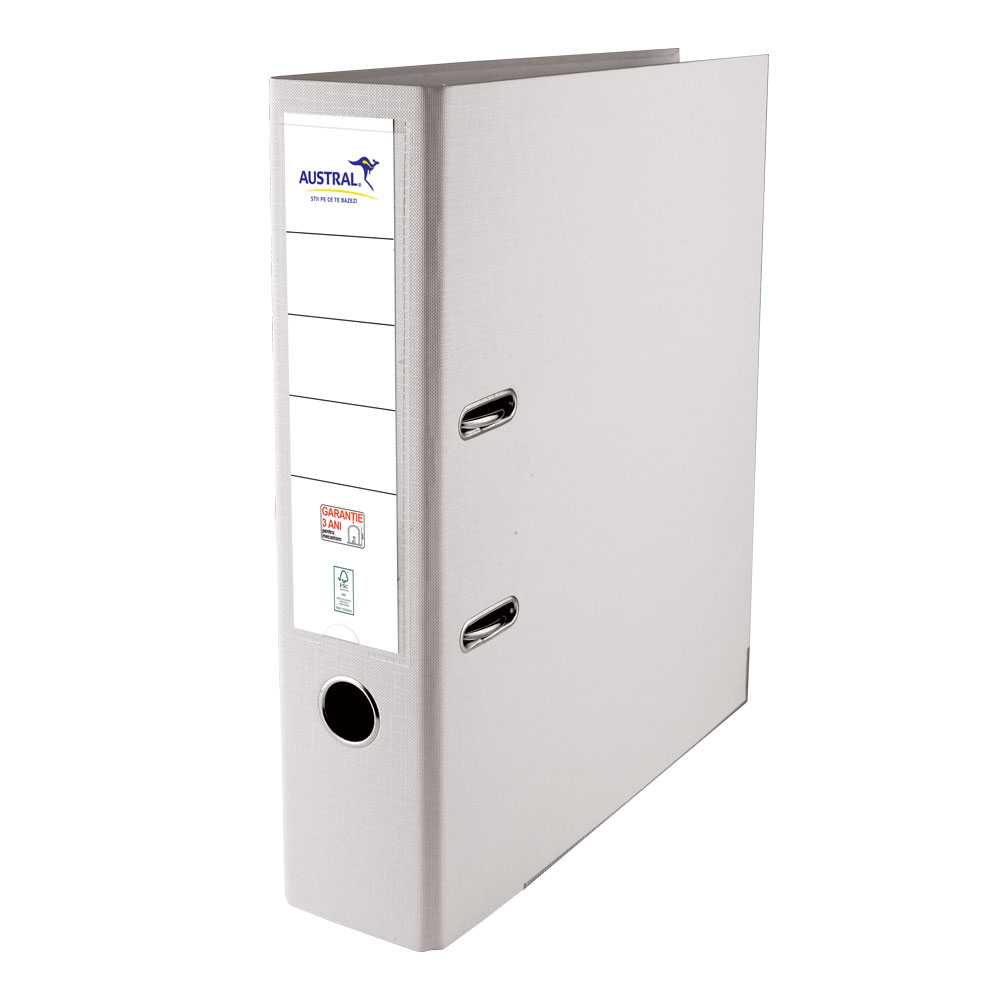 Biblioraft din carton acoperit interior/exterior cu polipropilena, format A4 si latime de 80 mm, cu o capacitate de stocare superioara (pana la 710 coli de 80 g/mp). Pentru a asigura certitudinea calitatii si a trasabilitatii e specificat un numar de fabricatie pe fiecare biblioraft.