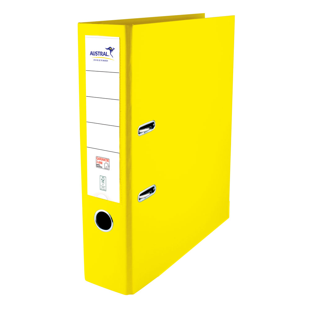 Biblioraft din carton acoperit interior/exterior cu polipropilena, format A4 si latime de 80 mm, cu o capacitate de stocare superioara (pana la 710 coli de 80 g/mp). Pentru a asigura certitudinea calitatii si a trasabilitatii e specificat un numar de fabricatie pe fiecare biblioraft.