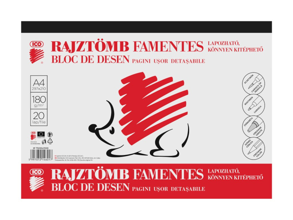 Bloc de desen cu 20 de pagini usor detasabile, ce pot fi utilizate atat la desen, cat si la pictura. Filele sunt din hartie groasa de 180 g/mp si au dimensiuni A4 (297 x 210 mm).