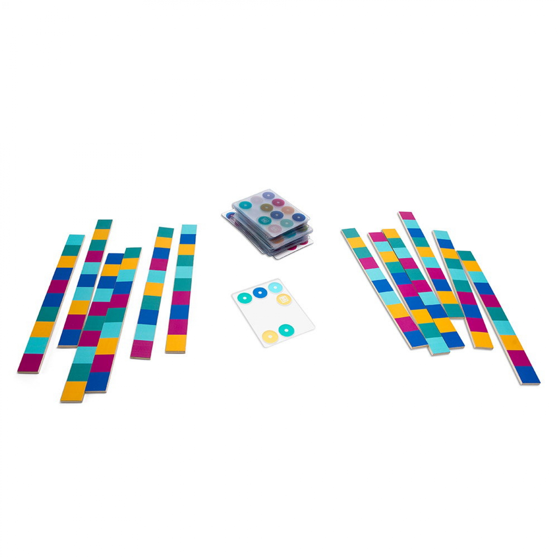Brain Race este un joc educativ si distractiv marca BS Toys, care va testa gandirea logica si strategica, perceptia spatiala si viteza copiilor si nu numai. Muta benzile cu dungi colorate cu susul in jos si in lateral pentru a crea modelul corect. Fii primul care realizeaza puzzle-ul cu benzi colorate, astfel incat sa se potriveasca cu modelul de culoare de pe cardul transparent selectat. Fiecare jucator va lua un set de sase benzi. Amesteca toate cardurile transparente si pune-le intr-un teanc cu fata in sus pe masa. Se ia un card din partea de sus a teancului si se aseaza pe masa intre jucatori. Ambii jucatori vor incerca sa reproduca modelul de pe card cat mai repede posibil, mutand benzile cu susul in jos si in lateral. Pentru a castiga runda, trebuie sa fii primul care plaseaza cardul deasupra benzilor tale, astfel incat inelele colorate de pe acestea sa se potriveasca cu culorile de pe benzi. Pentru a te verifica daca ai facut bine, aseaza cardul cu modelul peste benzi. Pastreaza cardul castigator si fii primul care aduna 7 carduri, pentru a castiga jocul! Jocul contine: 12 benzi de lemn cu dungi colorate (2 seturi a cate 6 benzi) si 40 de carduri transparente cu modele. Material de fabricatie: placaj (benzile) si plastic PET (cardurile) Numar jucatori: 2 Dimensiune benzi: 27 x 2.7 cm Dimensiune carduri: 11 x 8.5 cm Dimensiune ambalaj: 30 x 5 x 22 cm Varsta recomandata: 8 ani+ [embed]https: youtu.be FvU3mnCIkac[ embed]