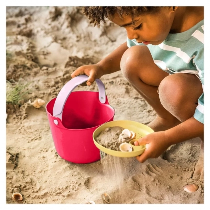 Bucki este o noua galeata pentru plaja si gradina, marca Quut, cu un design modern si culori atractive, care garanteaza distractia atat la plaja, cat si in natura. Simpatica galetusa cu sita este perfecta pentru a colecta, spala si transporta scoici si alte mici comori de la plaja sau, pentru cei carora le place sa construiasca castele de nisip, Bucki este instrumentul perfect, deoarece are o forma convenabila si un maner practic care se fixeaza cu un click, potrivite pentru mainile mici. De asemenea, Bucki este perfect pentru colectarea, curatarea si transportul micilor comori din natura, fiind partenerul ideal pentru copiii carora le place sa adune frunze, crengute, pietricele, flori si alte asemenea minuni mici. Indiferent ca va fi folosit la plaja, in gradina, in natura sau la lada de nisip din curte, Bucki este pregatit oricand pentru noi aventuri distractive in aer liber! Bucki are un maner ergonomic ce se fixeaza cu un click si dimensiuni potrivite pentru mainile mici ale copiilor, este sigur de utilizat si usor de curatat. Bucki incurajeaza jocul in aer liber, imaginatia, creativitatea, indemanarea, interactiunea dintre copii. Jucaria este fabricata din material plastic rezistent si durabil, reciclabil, este sigur de utilizat si usor de curatat. Produsele Quut nu contin BPA, ftalati si latex, sunt reciclabile si respecta normele europene si internationale de siguranta a jucariilor si a folosirii substantelor chimice. Quut reinventeaza jucariile clasice de plaja, ofera o colectie de jucarii inteligente, sustenabile si rezistente, care combina designul, ergonomia, durabilitatea si eco-responsabilitatea (fabricate fara BPA, ftalati, latex si 100% reciclabile). Dimensiuni: 18 x 17 x 14 cm Dimensiuni sita: 14 x 14 x 2 cm Varsta recomandata: 1 an+ Galeata este disponibila in 4 variante de culoare: - verde cu maner albastru deschis si sita in nuanta galben banana; - rosu cherry cu maner roz deschis si sita in nuanta galben banana; - albastru deschis, cu maner galben-banana si sita in nuanta turcoaz; - albastru intens cu maner si sita albastru deschis. Alege-ti preferata din lista de mai sus! Pretul afisat este pentru 1 galeata (o bucata). Produsele Quut sunt inspirate de modul in care copiii se joaca la plaja. Sunt distractive, versatile, ergonomice, multifunctionale, frumoase si cel mai important: construite pentru a rezista sezon dupa sezon si pentru a putea fi transmise si generatiei urmatoare. Gata cu galetusele sparte, gata cu lopetile rupte si cu plasticul aruncat in urma!