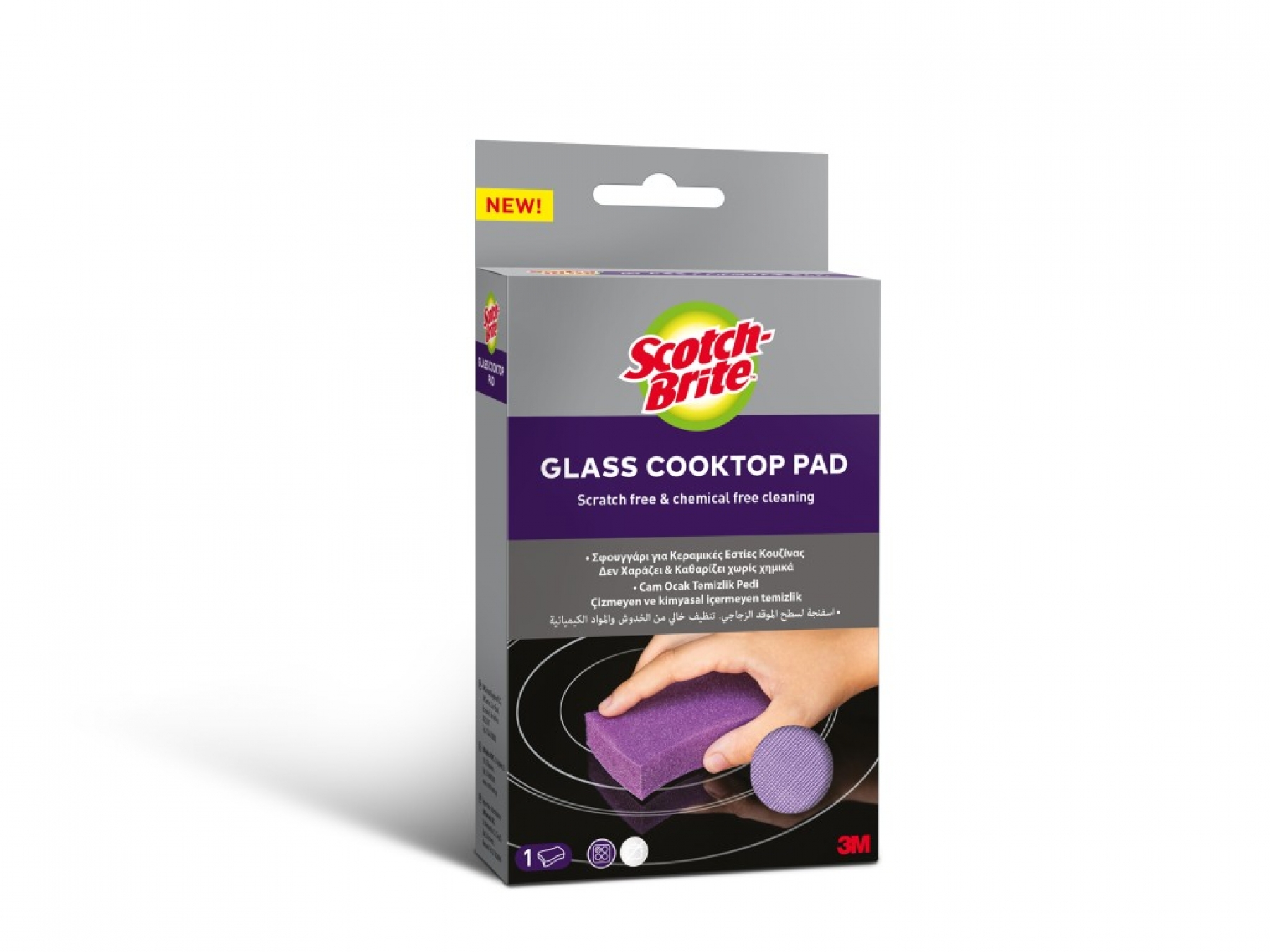 Cu ajutorul tehnologiei microtexturate de la 3M pentru curățarea suprafețelor, buretele este special conceput pentru a curăța suprafața de sticlă a plitei fără a utiliza substanțe chimice și fără a zgâria.