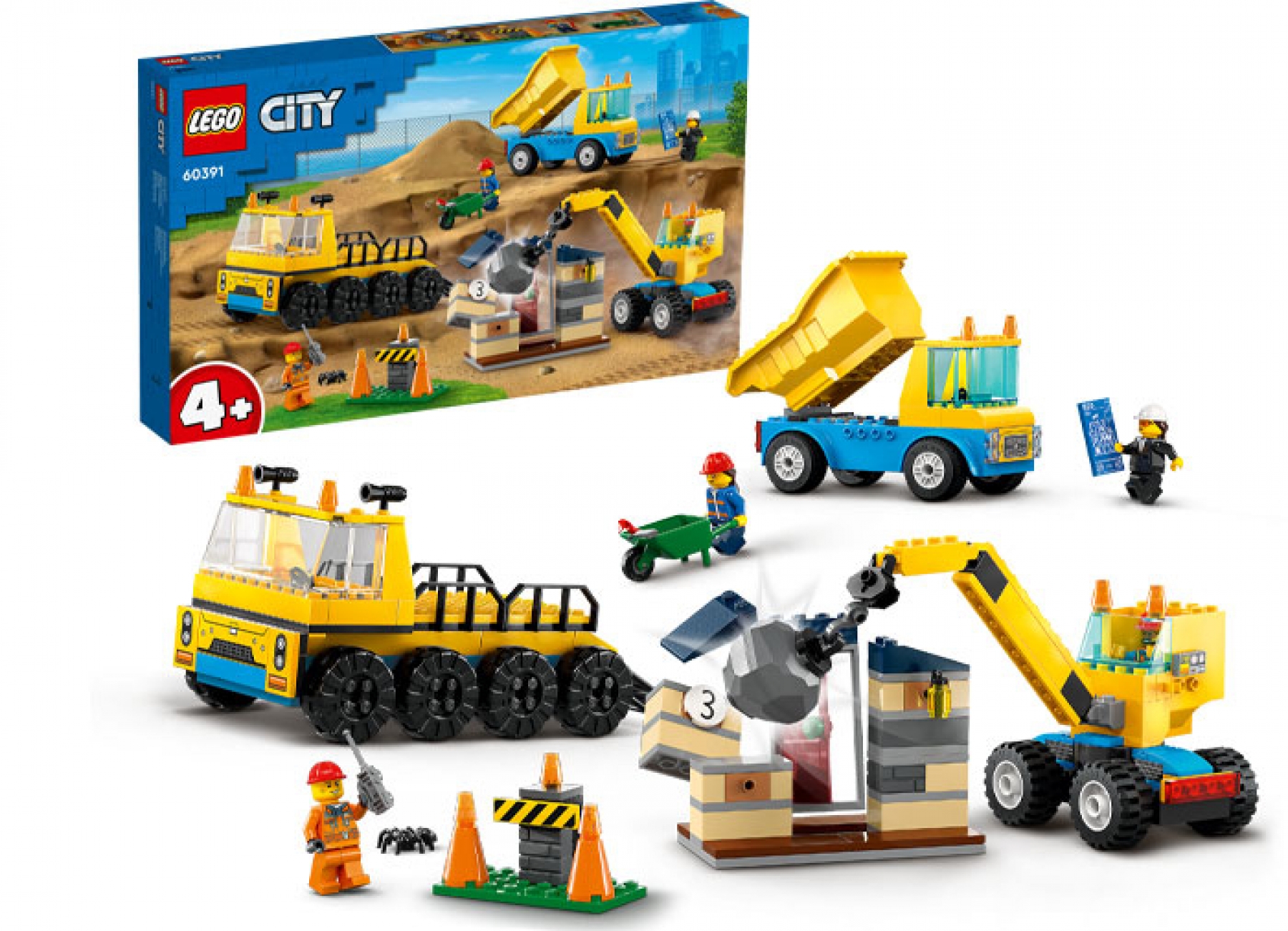 Copiii invata pe masura ce construiesc si se joaca cu setul LEGO reg; City Camioane de constructie si macara cu bila pentru demolari (60391). Special conceput pentru copii de 4+ ani, acest set de constructie contine 3 vehicule pentru constructii, o casa darapanata cu o functie de daramare, 3 minifigurine muncitori si accesorii distractive pentru joaca fantezista. Conceput pentru prescolari si preadolescenti Acest set de joaca 4+ cu o constructie usoara include un element LEGO Caramida pentru incepatori, instructiuni ilustrate si aplicatia LEGO Builder, prietenul digital din timpul constructiei, cu instrumente intuitive care permit copiilor sa apropie, sa roteasca si sa vizualizeze modelele din toate unghiurile pe masura ce le construiesc. LEGO City Vehicule grozave Copiii cresc inconjurati de vehicule si masini uimitoare. Cu seturile de constructie LEGO City Vehicule grozave, ei au ocazia sa exploreze indeaproape aceste modele realiste, insotite de personaje amuzante care inspira joaca fantezista fara limite.