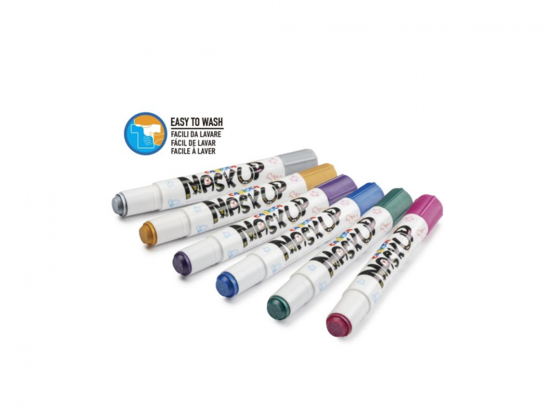 Setul Mask-up METALLIC, de la Carioca, este soluția perfectă pentru a realiza machiaje artistice pentru copii (și nu numai) pentru că textura culorilor este concepută pentru a adera ușor pe piele iar materiale utilizate sunt 100% non-toxice.