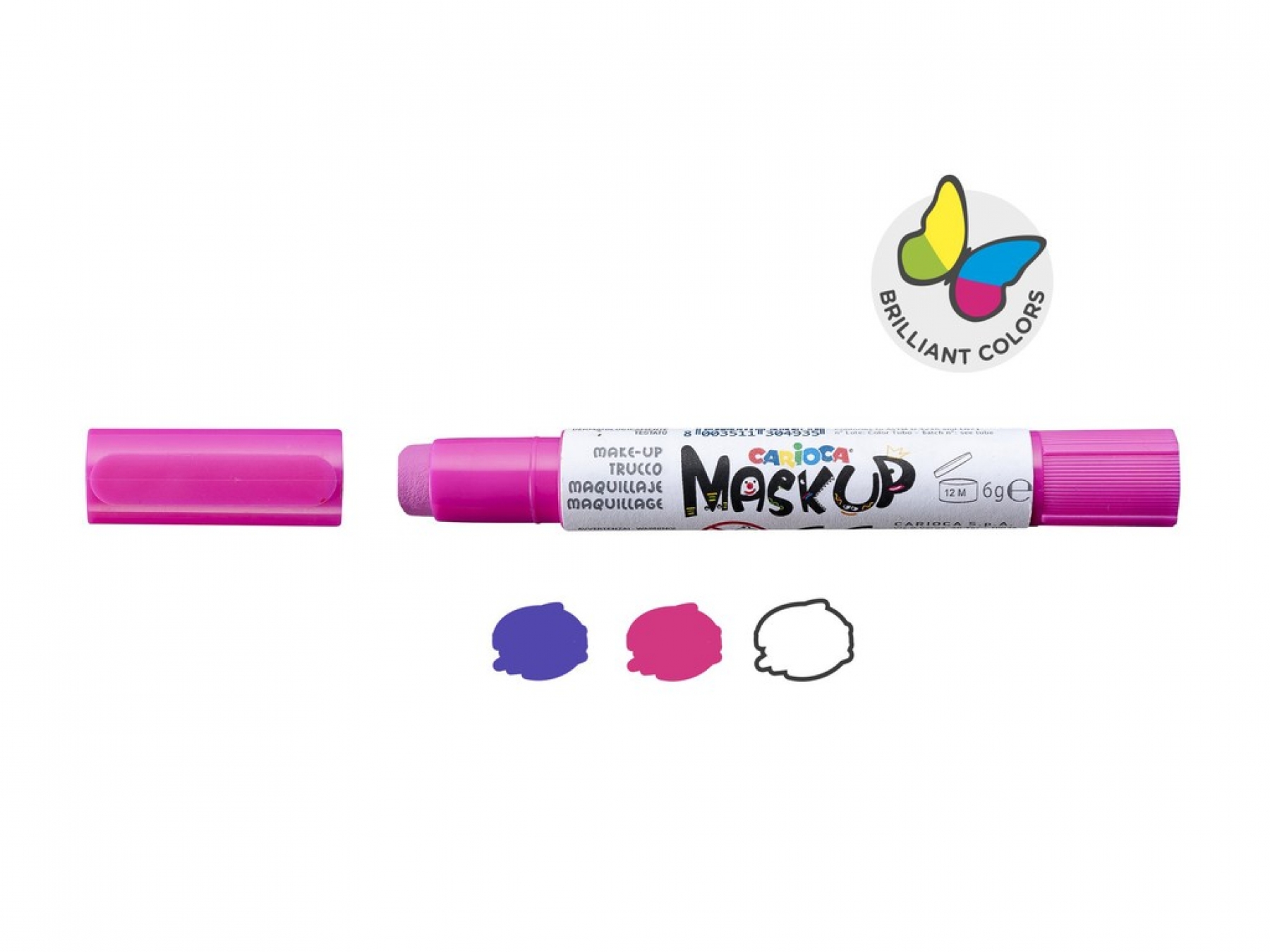 Seturile Mask-up, de la Carioca, sunt soluția perfectă pentru a realiza machiaje artistice pentru copii (și nu numai) pentru că sunt realizate din materiale non-toxice și textura culorilor este concepută pentru a adera pe piele. Pentru utilizare, rotiți stick-ul cu vopsea solidă pentru față și utilizați-l ca pe un ruj. Culori strălucitoare și lavabile, testate dermatologic. Puteți amesteca culorile între ele. Nu este nevoie de apă pentru aplicare. Culori lavabile, ce pot fi ușor curățate cu apă și săpun.