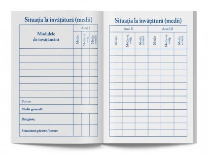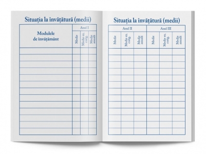 Interior: 32 pagini, tipar cu albastru, hârtie offset de 80 g