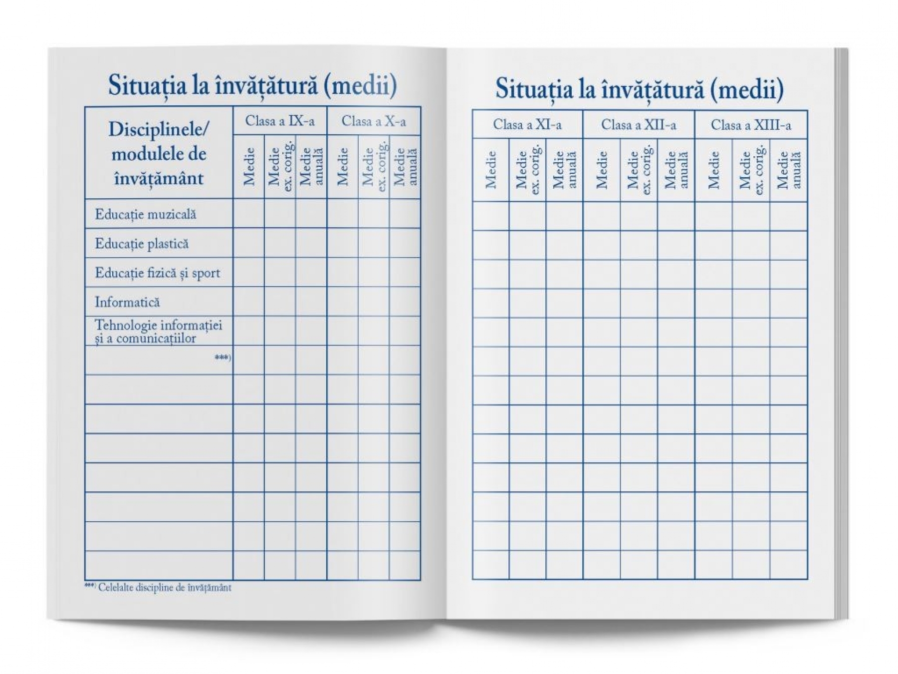 • Model valabil începând cu septembrie 2022 conform normelor Ministerului Învățământului