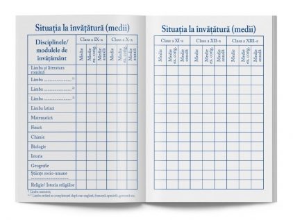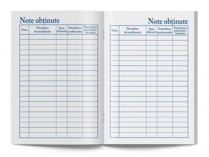 • Interior: 32 pagini, tipar cu albastru, hârtie offset de 80 g