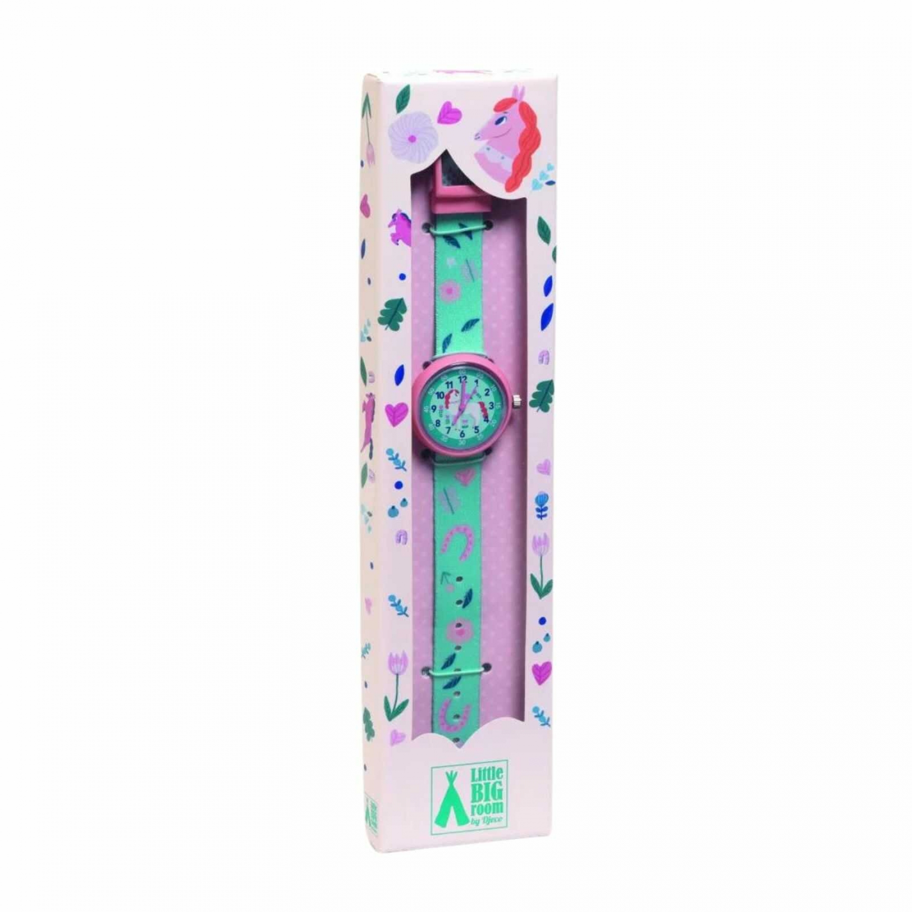 Ceasuri de mana pentru copii, rezistente la socuri si apa, 12 modele disponibile, colectia Djeco. Ziua in care copilul tau primeste primul ceas este una memorabila! Este implinirea dorintei lui de a , fi mare, . Ecranul are un design care ajuta la invatarea citirii orei exacte. Caracteristici : - Rezistent la apa pana la 3 ATM. - Carcasa rezistenta la socuri. - Mecanism si baterie fabricate in Japonia. - 2 ani garantie. - Functioneaza cu baterie, care este inclusa in set. Mecanismul japonez fac acele sa se miste silentios. Marcajele clare ale orelor si minutelor si acele subtiri faciliteaza citirea orei. Fiecare ceas vine ambalat intr-o cutie decorativa. Ceasurile sunt disponibile in 12 variante de modele si culoare: Model Purple Flash : Dimensiune ambalaj: 8 x 8 x 4cm. Ceas cu cuart cu curea reglabila din material textil. Luneta rotativa pe cadran. Dimensiunea ecranului: 3.4 cm diametru. Lungime curea: 21.5 cm. Model Stadium Hero : Dimensiune ambalaj: 8 x 8 x 4cm. Ceas cu cuart cu curea reglabila din material textil. Luneta rotativa pe cadran. Dimensiunea ecranului: 3.4 cm diametru. Lungime curea: 21.5 cm. Model Tinta roz : Dimensiune ambalaj: 8 x 8 x 4cm. Ceas cu cuart cu curea reglabila din material textil. Luneta rotativa pe cadran. Dimensiunea ecranului: 3.4 cm diametru. Lungime curea: 21.5 cm. Model Fulger albastru : Dimensiune ambalaj: 8 x 8 x 4cm. Ceas cu cuart cu curea reglabila din material textil. Luneta rotativa pe cadran. Dimensiunea ecranului: 3.4 cm diametru. Lungime curea: 21.5 cm. Model Comoara piratului : Dimensiune ambalaj: 16 x 3 cm. Bratara reglabila. Model Frunze colorate : Dimensiune ambalaj: 22 x 5 cm. Bratara reglabila, Ecran din quartz. Model Noapte buna : Dimensiune ambalaj: 22 x 5 cm. Bratara reglabila, Ecran din quartz, Ecran fluorescent, vizibil pe intuneric. Model Pasiune pentru Cai : Dimensiune ambalaj: 16 x 3 cm. Bratara reglabila. Model Pisica : Dimensiune ambalaj: 16 x 3 cm. Bratara reglabila. Model Puterea super-eroilor : Dimensiune ambalaj: 16 x 3 cm. Bratara reglabila. Model Ritmul inimii : Dimensiune ambalaj: 16 x 3 cm. Bratara reglabila. Model Koala : Dimensiune ambalaj: 22 x 5 cm. Bratara reglabila. Alege-ti prefertul din lista de mai sus! Pretul afisat este pentru 1 ceas de mana (o bucata). Varsta recomandata: 3 ani +. AVERTISMENT: Contraindicat copiilor sub 3 ani. Contine piese ce pot fi inghitite. A se utiliza sub directa supraveghere a unei persoane adulte. Producator: Djeco, Franta .