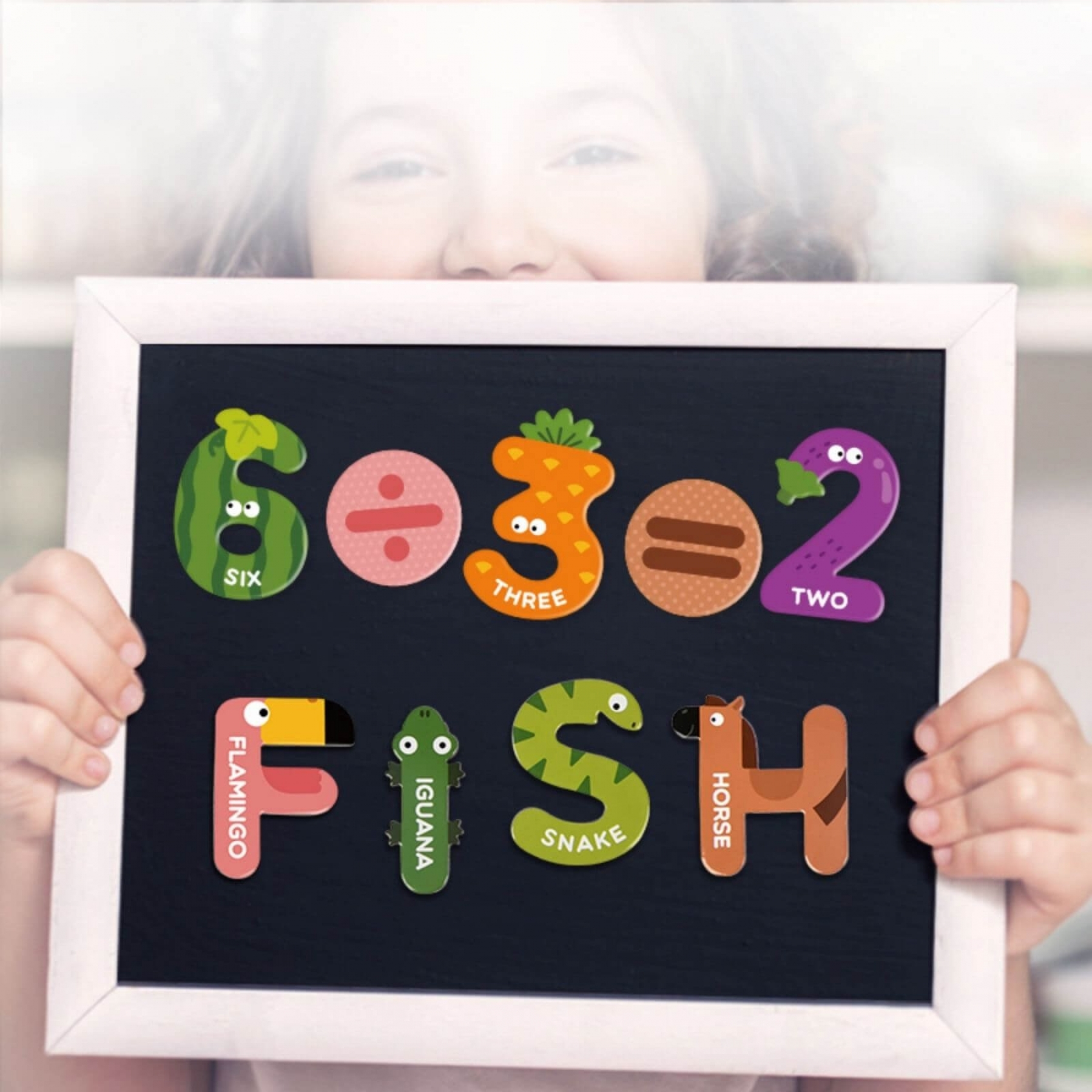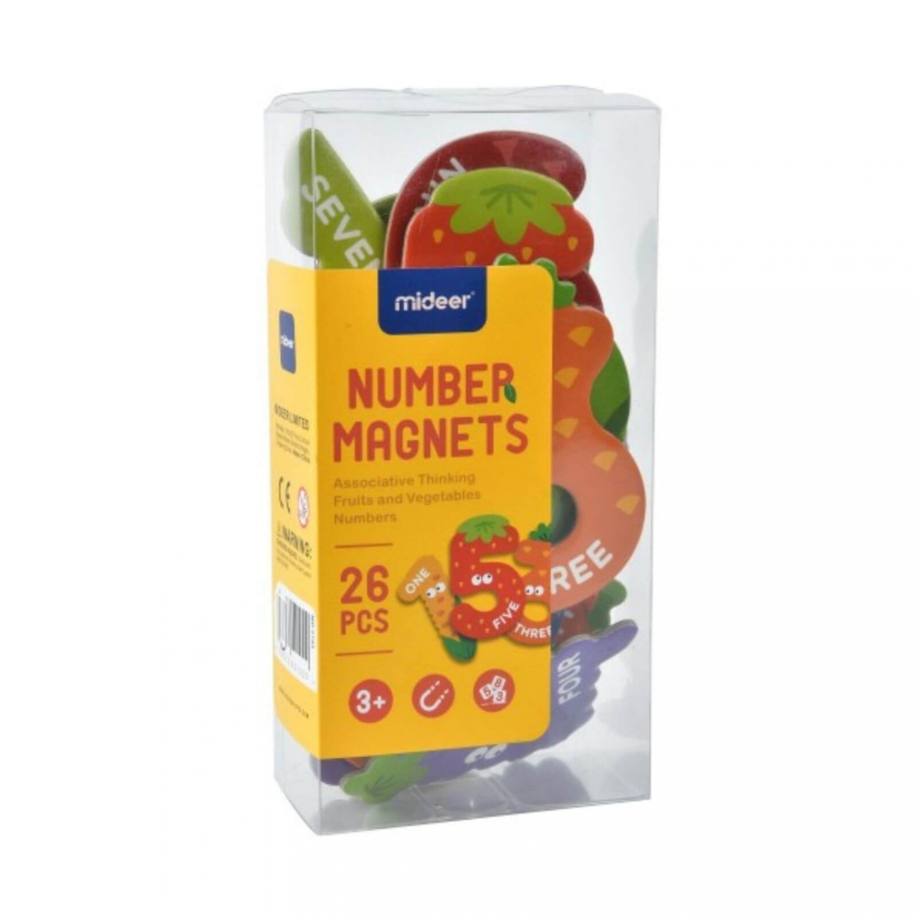 Cifre magnetice, 26 cifre si operatii matematice, magnet pe tot spatele Joaca este cel mai bun profesor! Setul de numere magnetice Mideer Jumbo include 20 de magneti numerici (de la 0 la 9) si 6 magneti pentru simboluri matematice (+-x ). Fiecare magnet este mare si frumos proiectat cu animale dragute, fructe sau legume, clare, in culori vii si fermecatoare. Fiecare cifra magnetica mare are un design adorabil de animal fructe legume si un nume numar potrivit. Acesti magneti au scop educational. Ajuta la promovarea cunoasterii numerelor si a invatarii simple a matematicii. Fiecare magnet este fabricat din folie UV laminata, carton presat gri si magnet moale, durabil si nu are miros neplacut. Magnetii sunt netezi si confortabili de prins si tinut, siguri pentru mainile mici. Acest set a indeplinit standardele de siguranta, inclusiv ASTM F963-17 si CPSIA. Ele pot fi folosite pe orice suprafata magnetica, cum ar fi frigidere, cuptoare cu microunde, table negre, table albe si multe altele. Este o alegere excelenta de cadou pentru Craciun, ziua de nastere si Ziua Copilului, de asemenea un ajutor didactic util pentru prescolari sau educatie timpurie. Setul contine: - 20 cifre din carton presat cu magnet pe tot spatele - 6 semne pentru operatii matematice Numar total piese : 26. Varsta recomandata : 3 ani+.