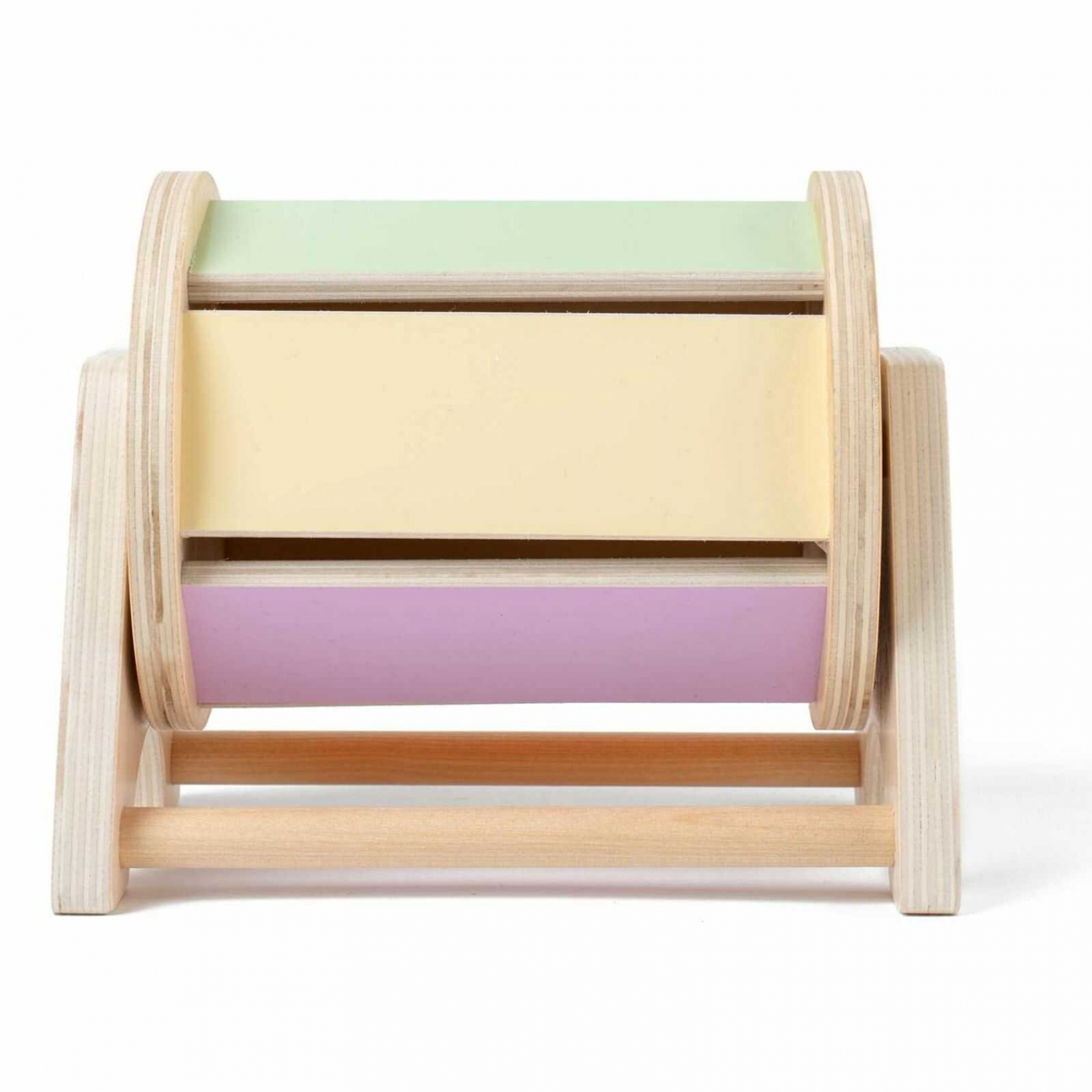Jucarie din lemn montessori, cilindru colorat cu bile zornaitoare si suport, 17.5 x 15 x 12.5 cm, 1 an+ Aceasta jucarie din lemn Montessori este in forma de cilindru si are un suport pentru a fi pozitionat pe o suprafata plana. Este o jucarie distractiva si educativa care ajuta la dezvoltarea abilitatilor motrice fine si a coordonarii mana-ochi. Cilindrul sau tamburul din lemn este rotativ, in culori pastel iar in interiorul lui se afla 3 bile zornaitoare care pot fi mutate prin rotirea cilindrului. Jucaria stimuleaza miscarea incheieturii lucru care ajuta la dezvoltarea musculaturii iar prin succesiunea culorilor ce se realizeaza prin invartiea cilindrului impreuna cu sunetele produse de bilute, copilul isi dezvolta si stimularea senzoriala. Suportul ofera stabilitate si permite copilului sa se concentreze mai bine asupra activitatii. Este o jucarie potrivita pentru copii de la 1 an+. Caracteristici: Varsta recomandata: 1 an+ Dimensiuni produs: 17.5 x 15 x 12.5 cm Material: Lemn Avertismente! Nu lasati ambalajele jucariilor produselor la indemana copiilor. Indepartati orice ambalaj al jucariei produsului inainte de a da jucaria produsul copilului. Va rugam sa supravegheati copilul in timp ce se joaca foloseste acest produs. Pastrati instructiunile si etichetele pentru referinte viitoare. Pastrati jucaria produsul departe de foc, feriti jucaria produsul de temperaturi ridicate si umiditate. Imaginile au caracter informativ. Nuanta, tonul si intensitatea culorii pot varia in functie de monitor.