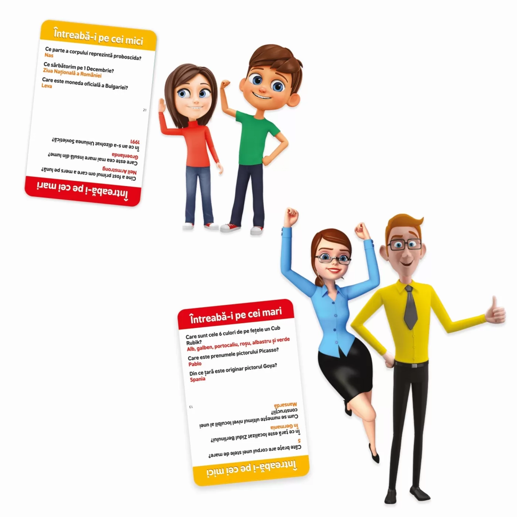 Cel mai distractiv joc de cunostinte generale pentru copii si parinti! Cu doua categorii de intrebari, familia este gata de confruntare. Raspunzand la intrebari de cultura generala, aveti sansa sa aflati cine e mai destept: oul sau gaina! Prin raspunsuri corecte la intrebarile de pe cartonasele de joc, fiecare echipa va inainta pe tabla de joc. Aveti grija la pozitiile BONUS sau PEDEAPSA, pentru ca va pot ajuta sa inaintati, sau va pot intoarce cateva pozitii pe tabla de joc. Echipa care care ajunge prima la linia de Finish castiga! Jocul contine: - tabla de joc, - 110 cartonase de joc cu 660 de intrebari, - 2 pioni si instructiuni de joc. Varsta recomandata: 7 ani+. Numar jucatori: 2 +.