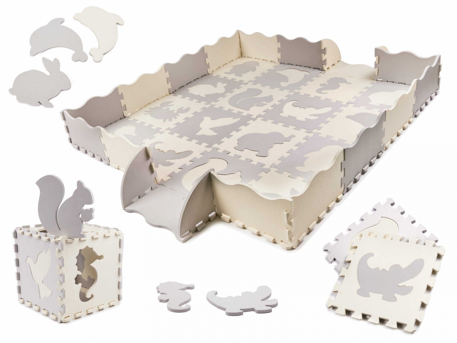 Covoras de Joaca pentru Copii, Mare, 143 x 143 cm, cu Placi tip Puzzle, din Spuma, perfect pentru Bebelusi si Camera Copilului. Creeaza un spatiu de joaca sigur si distractiv pentru copilul tau cu Covorul de Joaca pentru Bebelusi , realizat din placi tip puzzle din spuma EVA. Cu dimensiuni generoase si placi colorate cu desene de animale, acest covoras multifunctional ofera protectie impotriva frigului si a caderilor, asigurand confortul si siguranta copilului tau in timp ce exploreaza lumea. Beneficiile Covorului de Joaca Puzzle: Protectie si siguranta : Placile din spuma EVA absorb caderile si protejeaza copilul de frig, oferind un spatiu sigur pentru primii pasi si pentru joaca activa. Placi detasabile educative : Covorul include placi detasabile cu desene de animale, care stimuleaza dezvoltarea abilitatilor motorii si cognitive ale copilului. Aceste piese ajuta la recunoasterea formelor si culorilor. Tarc si loc de loaca modular : Placile puzzle permit crearea unui tarc sau a unui covor de joaca adaptabil, perfect pentru delimitarea unui spatiu de joaca sigur si confortabil. Usor de curatat si impermeabil : Fabricat din spuma EVA, covorasul este impermeabil si se curata foarte usor , doar stergeti-l cu o carpa umeda. Design modern si practic : Culorile pastelate si contrastante fac ca acest covor sa fie nu doar functional, ci si un element decorativ atractiv pentru camera copilului. Covorasul se poate depozita usor, fiind livrat cu o punga practica. Caracteristici si specificatii: Numar de elemente : 36 (16 puzzle-uri cu animale detasabile, 16 cadre, accesorii) Material : Spuma EVA, non-toxica si elastica Culori : Negru, roz, alb Dimensiuni placi puzzle : 30 x 30 x 1 cm Dimensiuni covor complet : 143 x 143 x 1 cm Dimensiuni tarc format : 113 x 113 x 16 cm Impermeabil si anti-alunecare : Da Pachet : Covorul vine ambalat intr-o punga practica pentru depozitare si transport De ce sa alegi Covorul de Joaca Puzzle? Acest covor de joaca nu este doar un loc distractiv si sigur pentru copilul tau, ci si un instrument educativ excelent. Placile detasabile stimuleaza dezvoltarea imaginatiei, gandirii logice si abilitatilor motorii fine. Fabricat din materiale sigure si usor de intretinut, covorul este ideal pentru a crea un spatiu de joaca confortabil si educativ acasa. Ofera copilului tau un mediu sigur si confortabil de joaca cu Covorul de Joaca Puzzle , perfect pentru a stimula dezvoltarea abilitatilor motorii si cognitive.