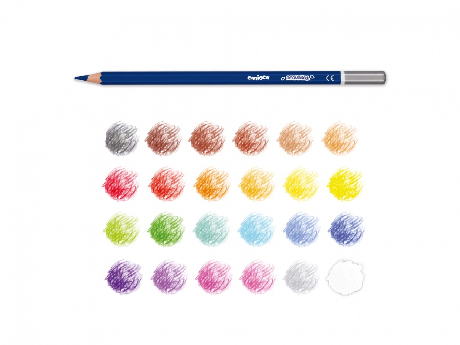 24 de creioane acuarelă, în culori diferite, prezentate în cutie metalică