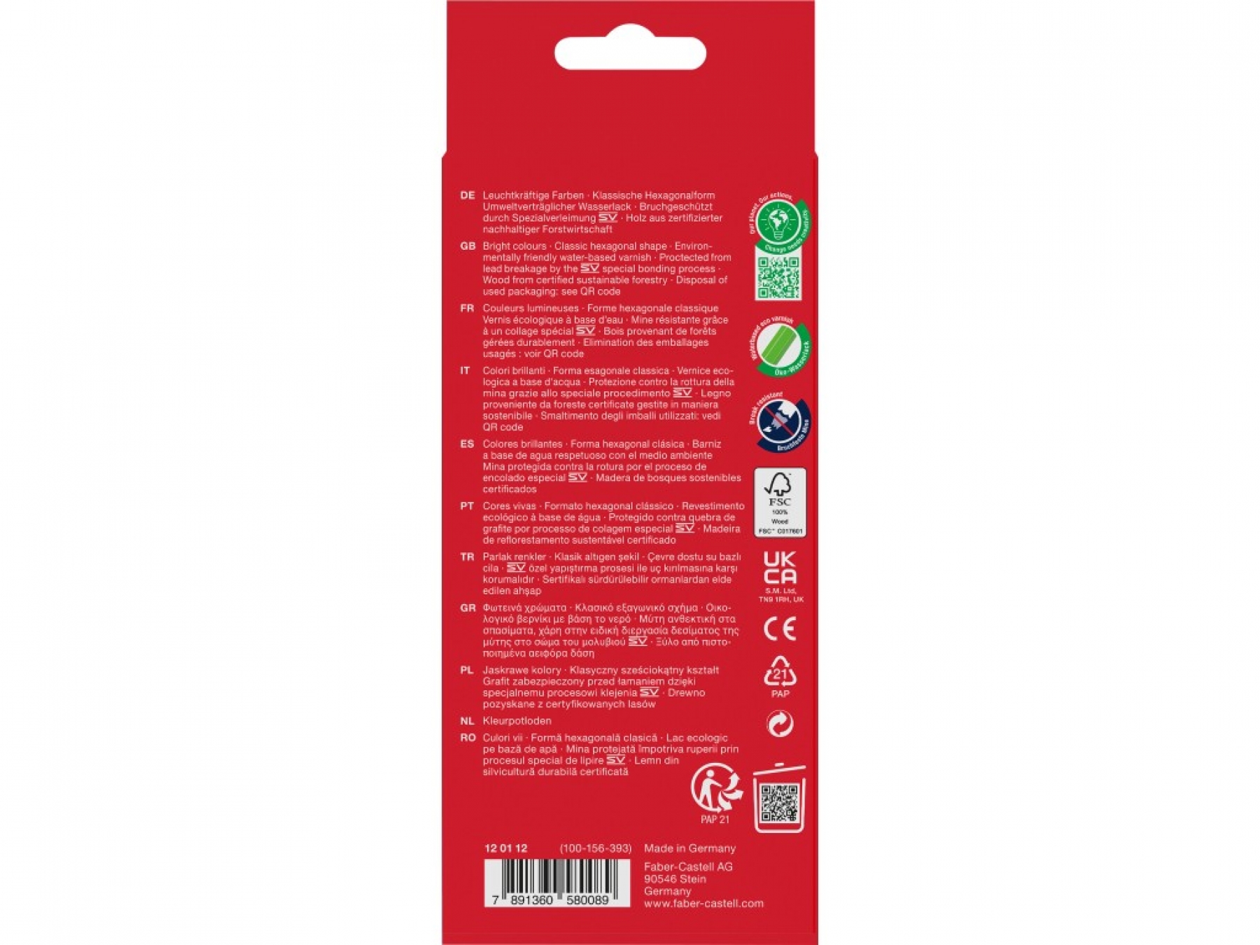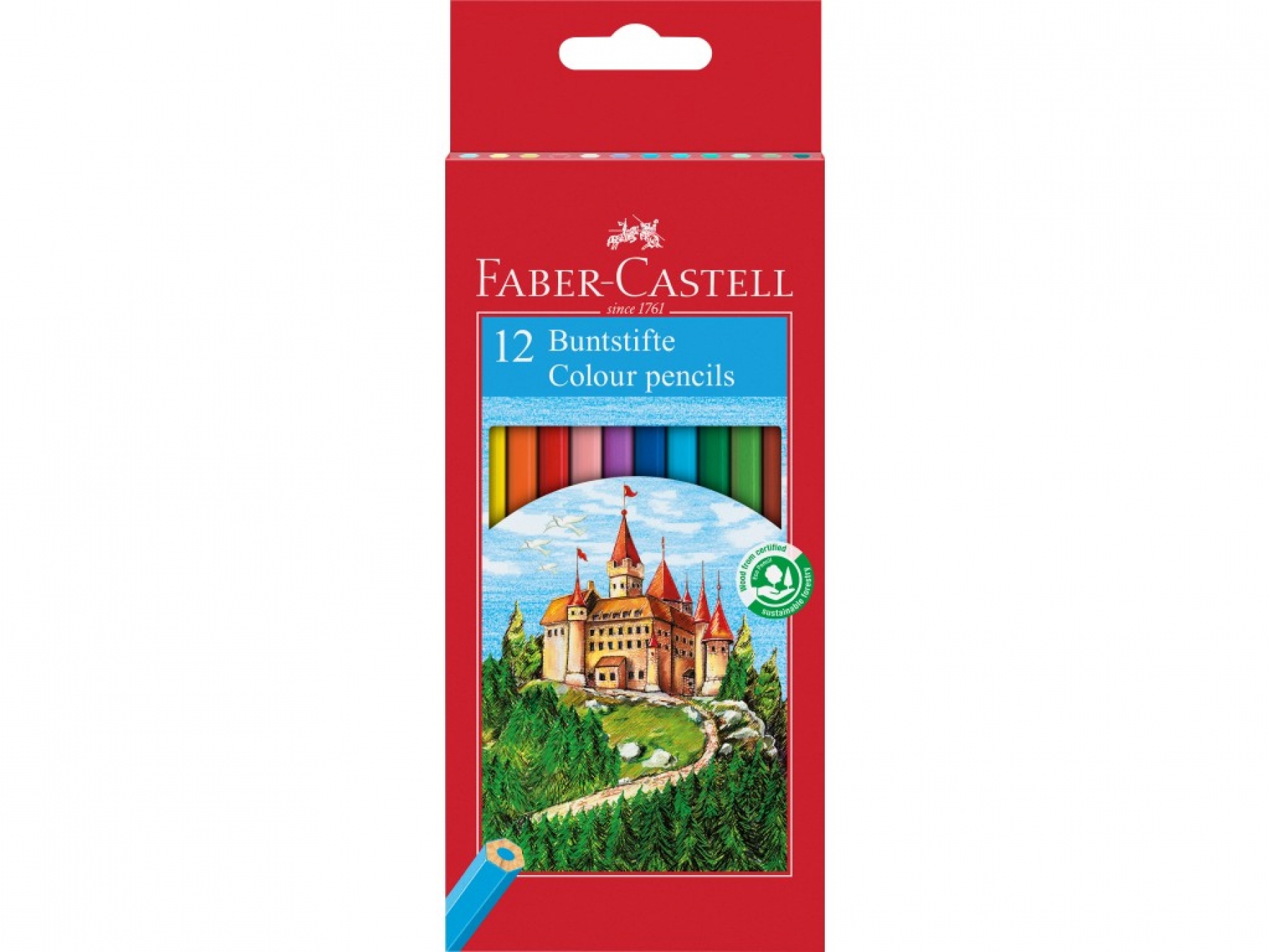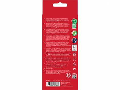 Cutie carton cu 12 creioane colorate hexagonale.