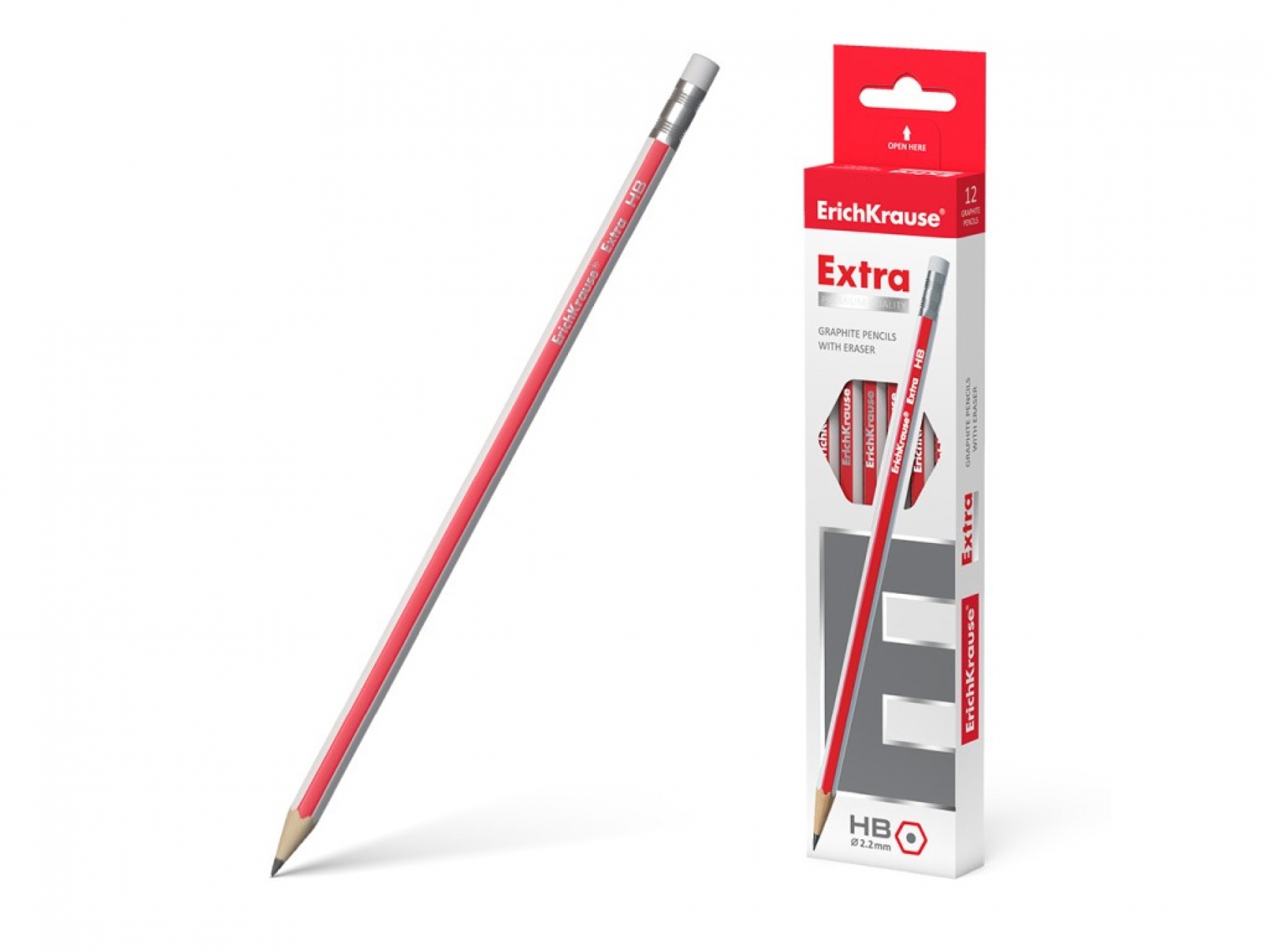 Creion grafit clasic hexagonal cu gumă de șetrs.