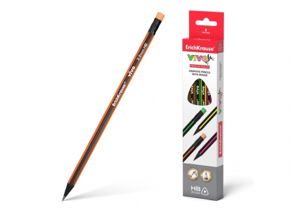 Creion grafit ergonomic triunghiular cu gumă de șters, realizat din lemn selectat.