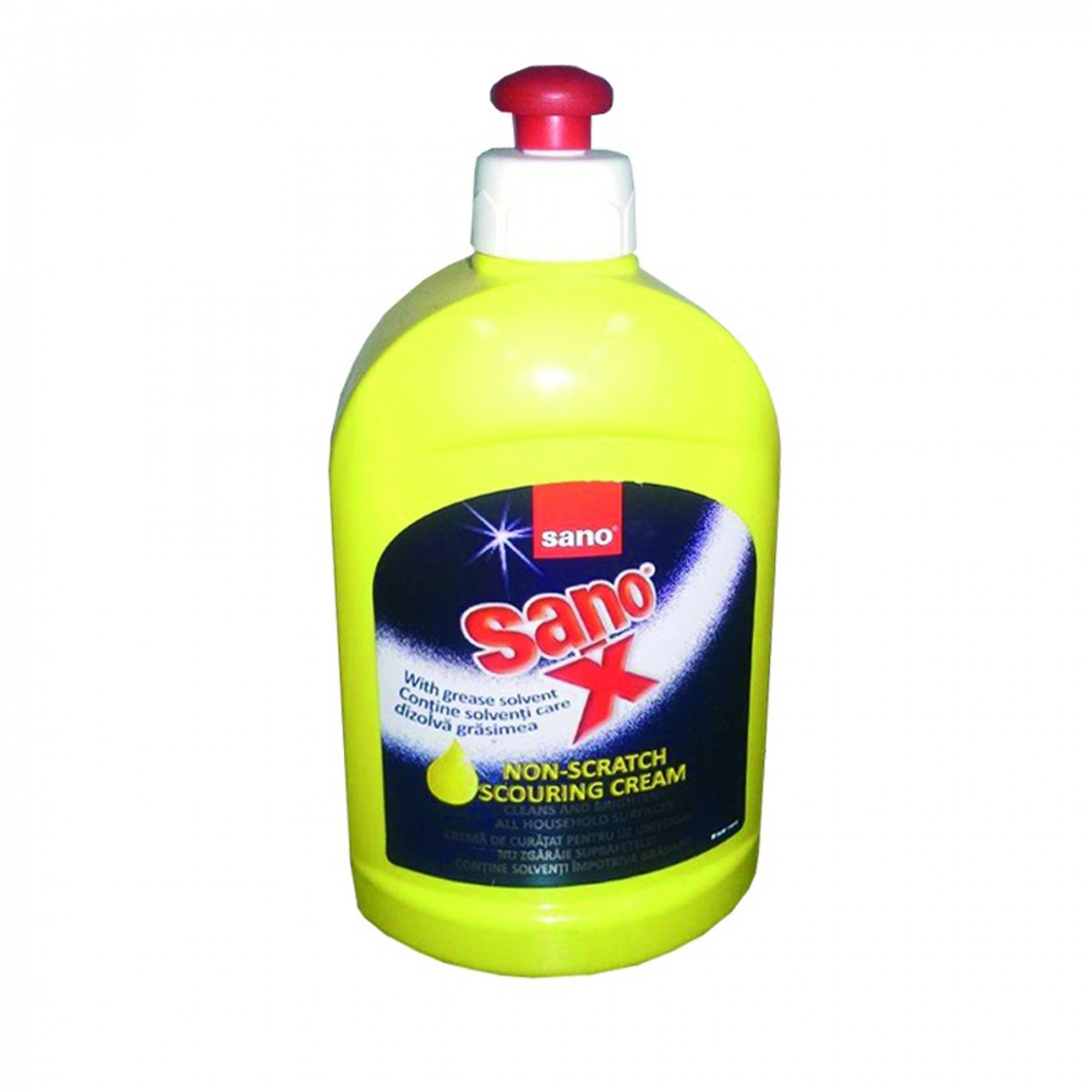Folosit in baie, Sano X Cream curata si confera stralucire chiuvetelor, cazilor, gresiei, obiectelor din ceramica si inox.