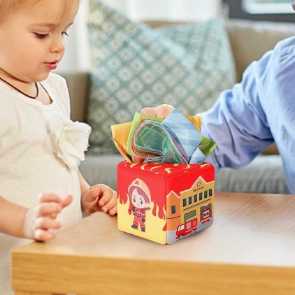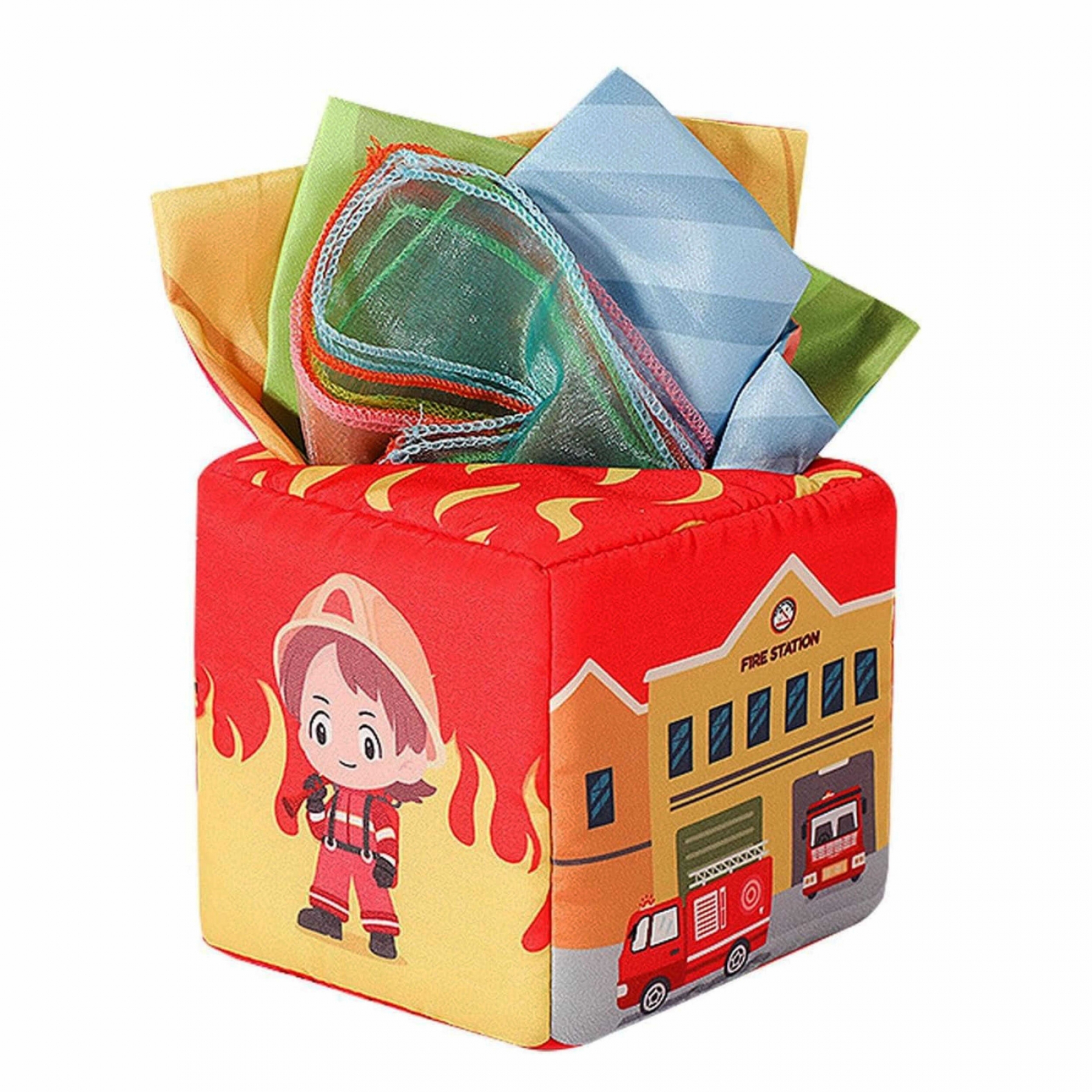 Joaca inteligenta incepe devreme - stimuleaza simturile bebelusului cu o jucarie catifelata si plina de surprize. Bebelusii sunt curiosi din primele luni de viata, iar aceasta cutie senzoriala le ofera exact ce au nevoie: culori vii, texturi diferite, sunete placute si o multime de descoperiri. Jucaria ii ajuta sa se dezvolte armonios, in timp ce se joaca si se bucura. Este ideala pentru bebelusi de la 6 luni pana la 2 ani, dar si pentru parinti care cauta o jucarie educationala, sigura si usoara de luat in calatorii. Perfecta pentru folosirea acasa, in carucior, la bunici sau chiar in avion. Ce o face diferita de alte jucarii senzoriale? ,œ Combinatia perfecta intre simt tactil, auditiv si vizual ,œ Textil moale, special pentru maini delicate ,œ 11 servetele detasabile, dintre care 3 fosnesc si atrag atentia ,œ Tematica pompieri , pentru bebelusi care iubesc aventura si culoarea ,œ Compacta si usoara , ideala pentru calatorii Cum se foloseste , scenariu real: Mama introduce servetelele in cub, iar bebelusul le scoate incantat, unul cate unul, fascinat de sunetul de fosnet si de culorile aprinse. Se amuza, se concentreaza si isi exerseaza abilitatile motorii fine in timp ce rade si descopera noi texturi. Caracteristici produs: cub textil senzorial, cu dimensiuni 11.5 x 11.5 x 11.5 cm material moale, sigur pentru bebelusi include 11 servetele textile: 8 colorate si 3 cu imprimeuri grafice si efect fosnitor tematica pompieri, ilustratii vesele si stimulative usor de folosit si transportat Beneficii pentru utilizatori: stimuleaza coordonarea mana-ochi si motricitatea fina dezvolta atentia, rabdarea si curiozitatea naturala incurajeaza jocul liber si inventiv ofera o alternativa sigura la servetele reale ideala pentru calatorii, momente de linistire si joaca discreta Recomandari de produse complementare: ðŸ mdash; Jucarii senzoriale pentru bebelusi cu texturi si sunete ðŸ mdash; Carti textile sau carti de baie tematice cu pompieri Specificatii tehnice: dimensiune cub: 11.5 x 11.5 x 11.5 cm material: textil catifelat, sigur pentru bebelusi varsta recomandata: 6 luni+ setul contine: 1 cutie textila, 11 servetele textile (8 colorate, 3 fosnitoare) usor de curatat manual cu o laveta umeda design vesel si tematic, potrivit pentru fetite si baieti Te bucuri ca ai ales aceasta jucarie? Da, pentru ca e mai mult decat draguta , e educativa, sigura si iti face viata mai usoara Nu doar ca ii tine atentia ocupata, dar il ajuta si sa se dezvolte armonios, sa se calmeze si sa invete in mod natural. E o alegere inteligenta si emotionala pentru orice parinte preocupat de dezvoltarea timpurie.
