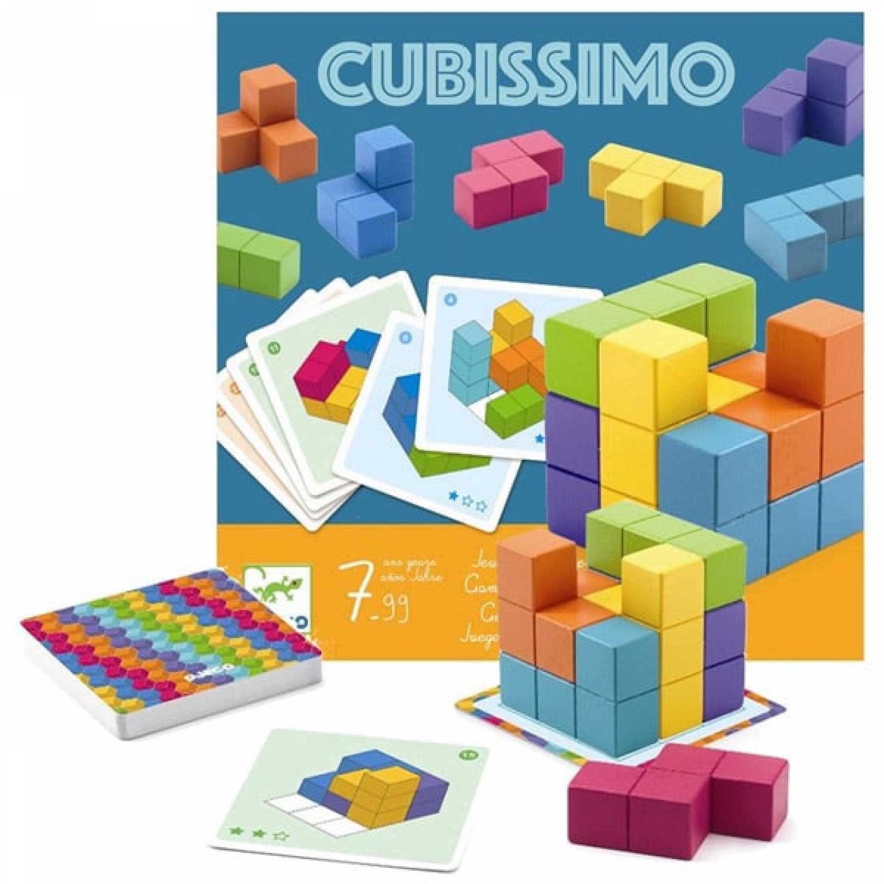 Joc de logica si rabdare Cubissimo. Inarmeaza-te cu rabdare! Scopul jocului este sa reconstruiesti cubul folosind toate piesele, pornind de la forma indicata pe fiecare cartonas. Setul contine: 7 piese din lemn care formeaza un cub 30 de carti marcate cu 3 grade de dificultate (usor, mediu, dificil). Varsta recomandata: + 7 ani. Producator: Djeco, Franta Confectionat din materiale si vopsele non toxice conform reglementarilor EN71ASTM.