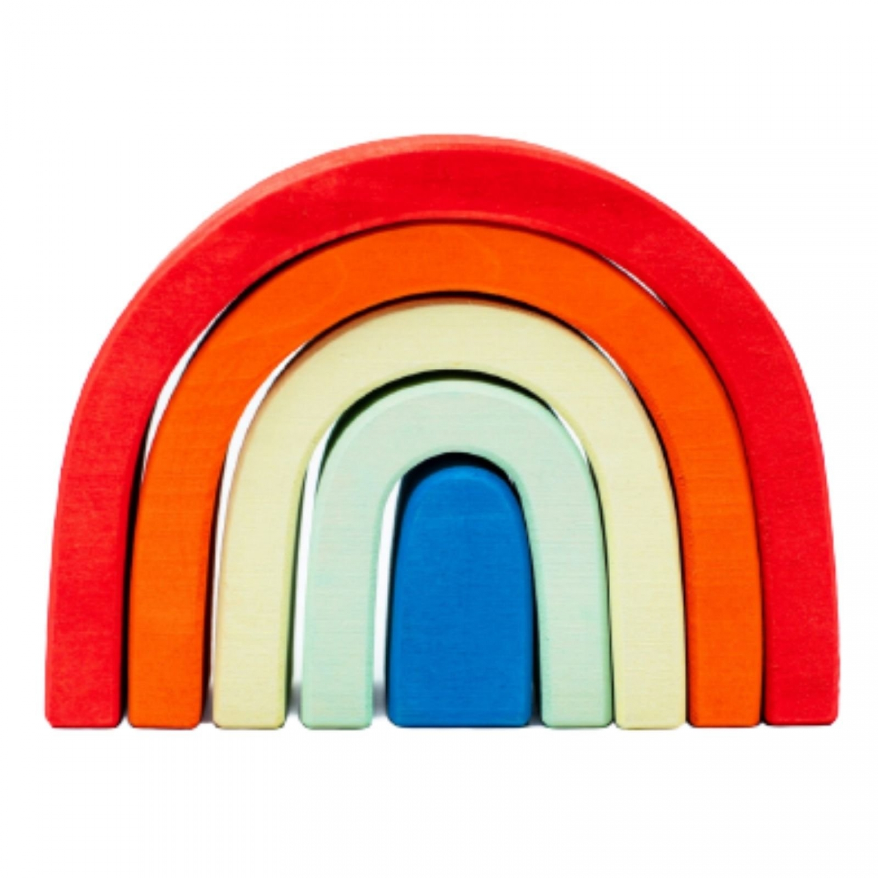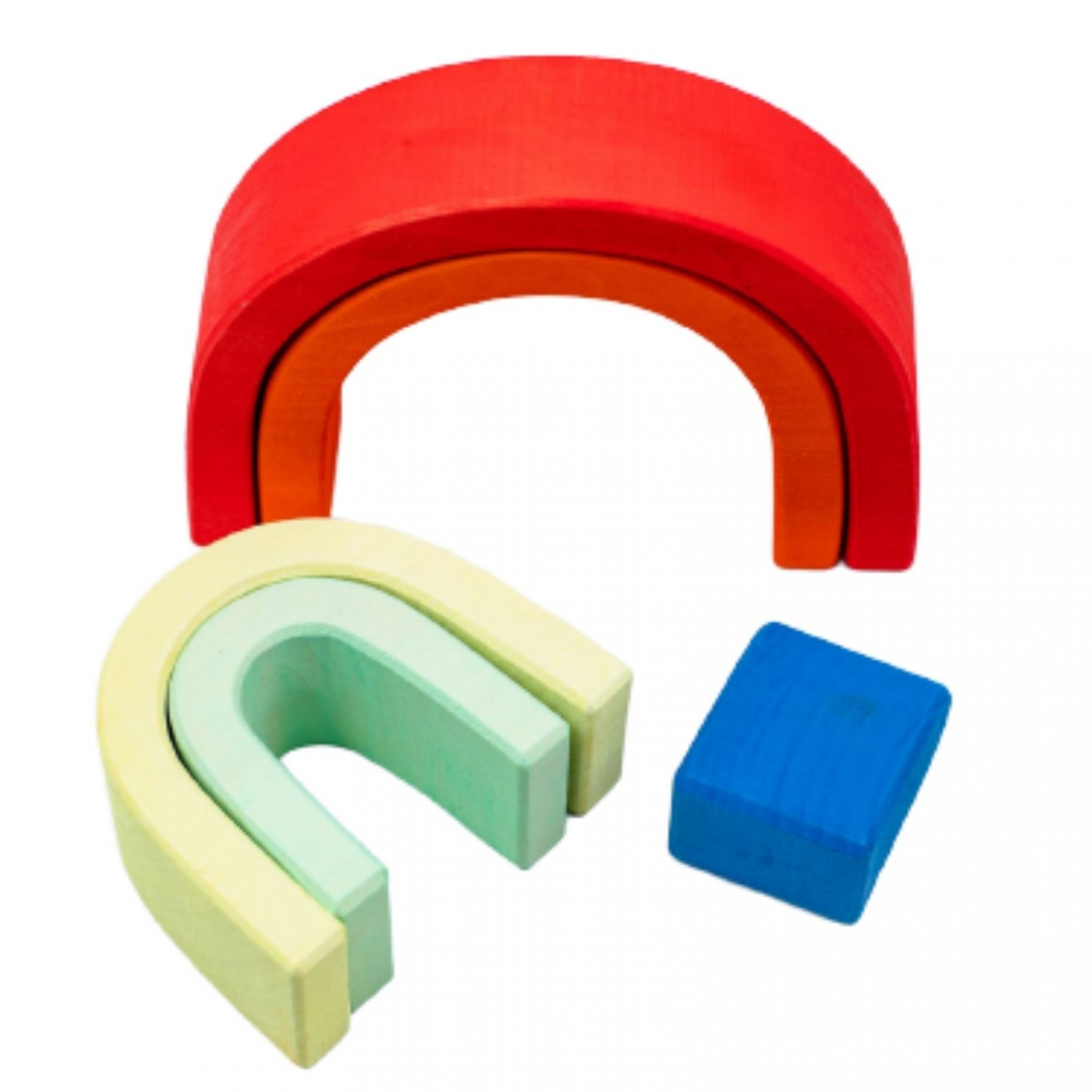 Acest curcubeu din lemn cu arcade frumos colorate este o jucarie de stivuire. Joaca libera dezvolta armonios imaginatia, indemanarea si creativitatea micutului tau. Contine 5 piese colorate diferit. Caracteristici: Dimensiuni arcada: 15 x 11.5 x 4 cm. Varsta recomandata: 3 ani+. Producator: Marc toys-Eco factory, Moldova Jucarie confectionata manual din lemn, cu vopsele non-toxice, conform normelor EN71. P Avertismente! Jucaria produsul poate contine piese mici care se pot inghiti sau inhala existand pericolul de sufocare sau nu este potrivita copiilor mai mici de 3 ani. Nu lasati ambalajele jucariilor produselor la indemana copiilor. Indepartati orice ambalaj al jucariei produsului inainte de a da jucaria produsul copilului. Va rugam sa supravegheati copilul in timp ce se joaca foloseste acest produs. Pastrati instructiunile si etichetele pentru referinte viitoare. Pastrati jucaria produsul departe de foc, feriti jucaria produsul de temperaturi ridicate si umiditate. rodusul este nou si comercializat in ambalajul original al producatorului. Imaginile au caracter informativ. Nuanta, tonul si intensitatea culorii pot varia in functie de monitor.