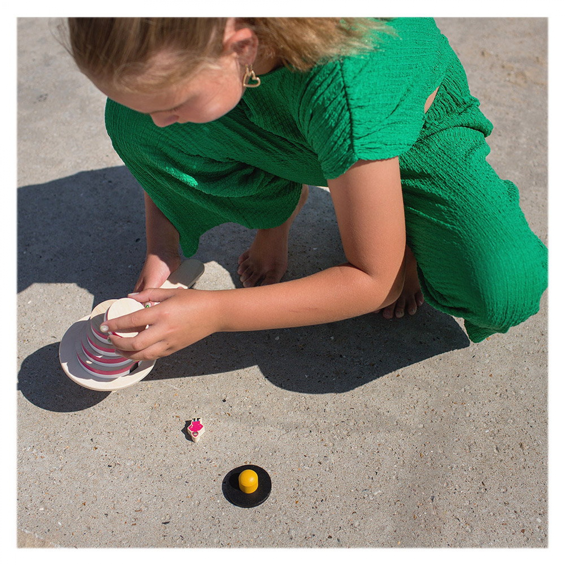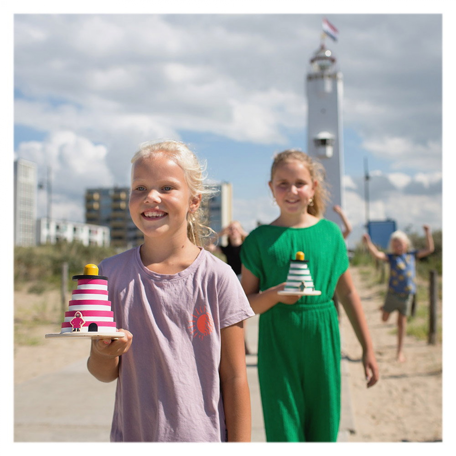Ajutor! Farul a cazut si piesele sunt imprastiate peste tot. Poti sa aduni toate piesele si sa-l reconstruiesti rapid, fara sa-l rastorni din nou? Fii primul care reuseste sa construiasca un far cu culorile potrivite! Fiecare jucator sau echipa are o culoare si trebuie sa-l ajute rapid pe paznicul farului, alergand dupa piese si adunandu-le pe toate. Asezati pe jos ambele palete din lemn cu fata in jos. Faceti 5 pasi inainte si asezati aleatoriu restul pieselor. Ambii jucatori stau langa palete si iau cate una. Dupa ce o vor intoarce si vor afla ce culoare au, trebuie sa adune piesele in culoarea respectiva si sa construiasca cat mai repede farul, pornind de la piesele mai mari la cele mai mici. Inainte de a aduna fiecare piesa, trebuie sa va deplasati la punctul de start. Castiga cine ajunge primul la punctul de start, dupa ce a terminat de construit, cu farul intact, inclusiv cu paznicul. Se poate juca si sub forma de stafeta, in echipe de 2-3 jucatori cu schimbarea paletelor intre jucatori la punctul de pornire. Jocul contine: 2 palete din lemn (27 x 13 cm), 14 piese rotunde din lemn (pentru construirea celor 2 faruri), 2 figurine paznic (3 x 2 x 1 cm). Toate piesele sunt fabricate din lemn de calitate certificat FSC. Un joc de curse antrenant si distractiv care dezvolta rapiditatea, echilibrul si coordonarea ochi-mana. Dimensiune cutie: 27 x 17 x 6 cm Varsta recomandata: 6 ani+