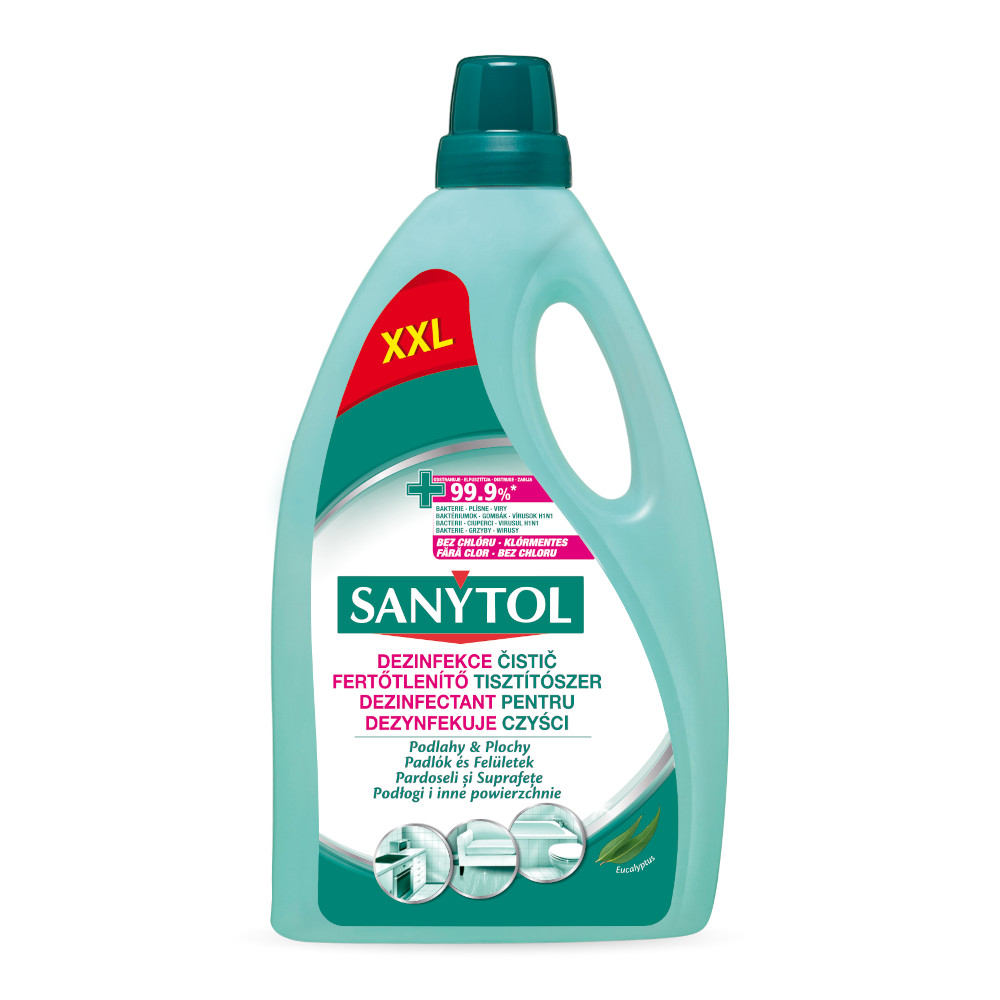 Detergent dezinfectant profesional pentru toate suprafetele: baie, bucatarie, birou, obiecte etc. Detergentul fara clor Sanytol curata si dezinfecteaza toata locuinta sau biroul. Formula cu actiune tripla: omoara 99,99% din bacterii, ciuperci, virusi.