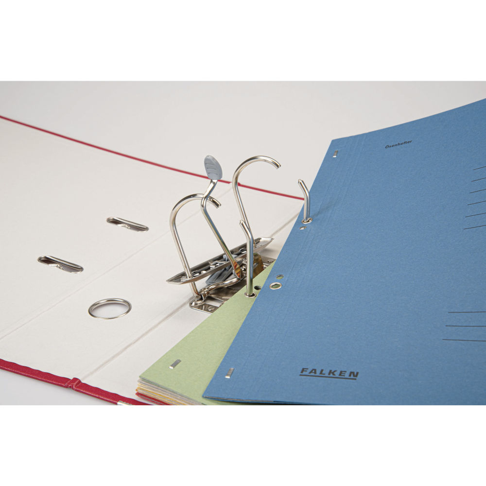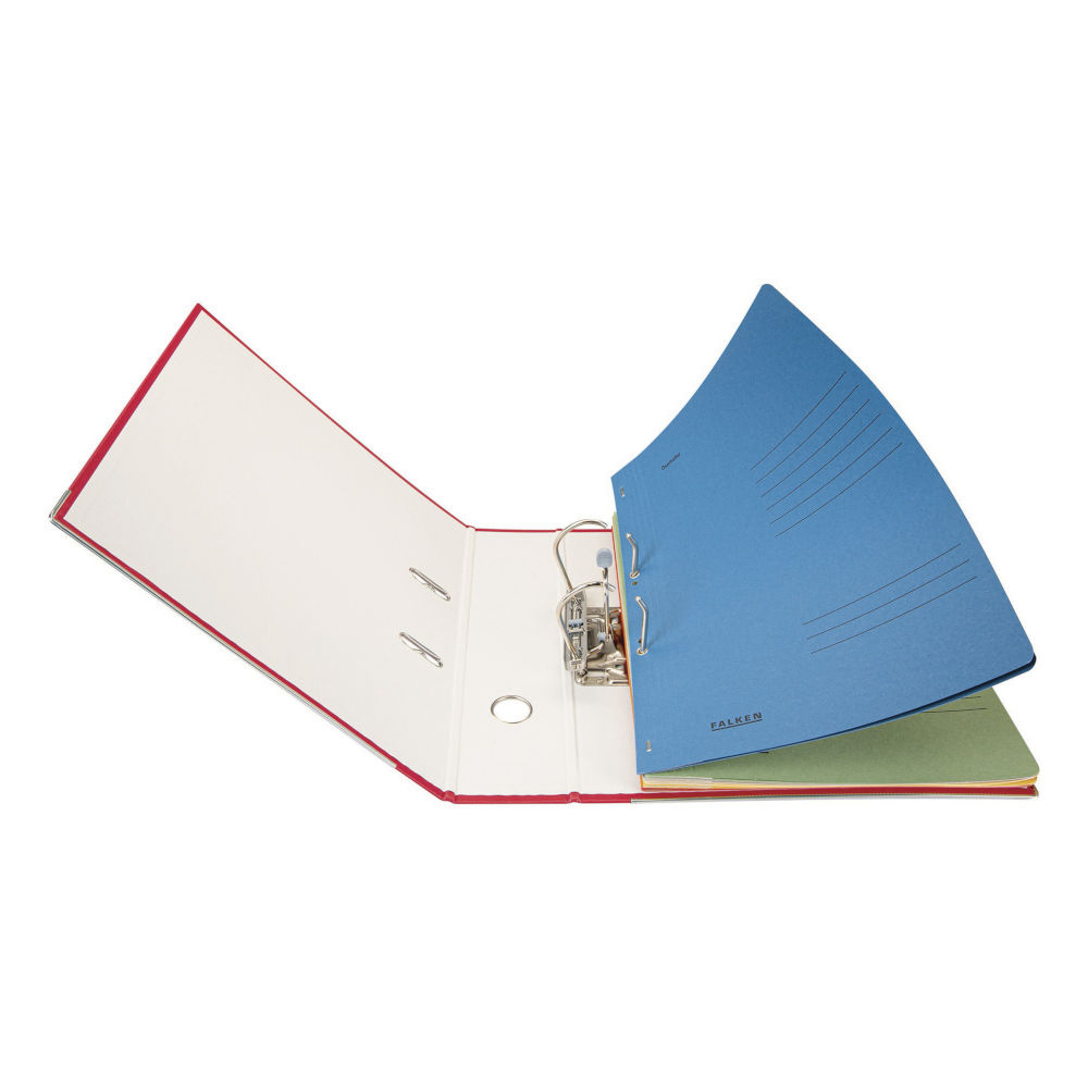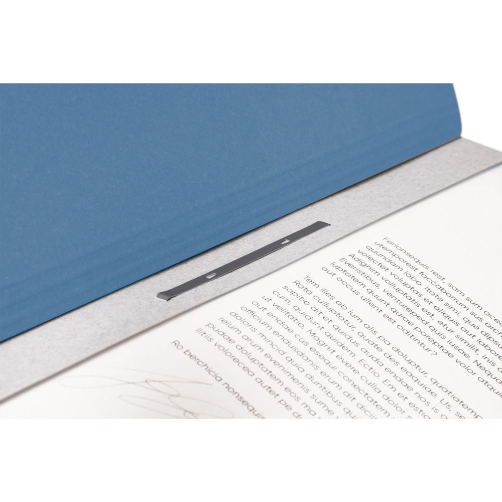 Sistemul de prindere a hartiei in interior este cu sina cu alonja metalica. Produsul este certificat Blue Angel si este disponibil intr-o gama diversa de culori.