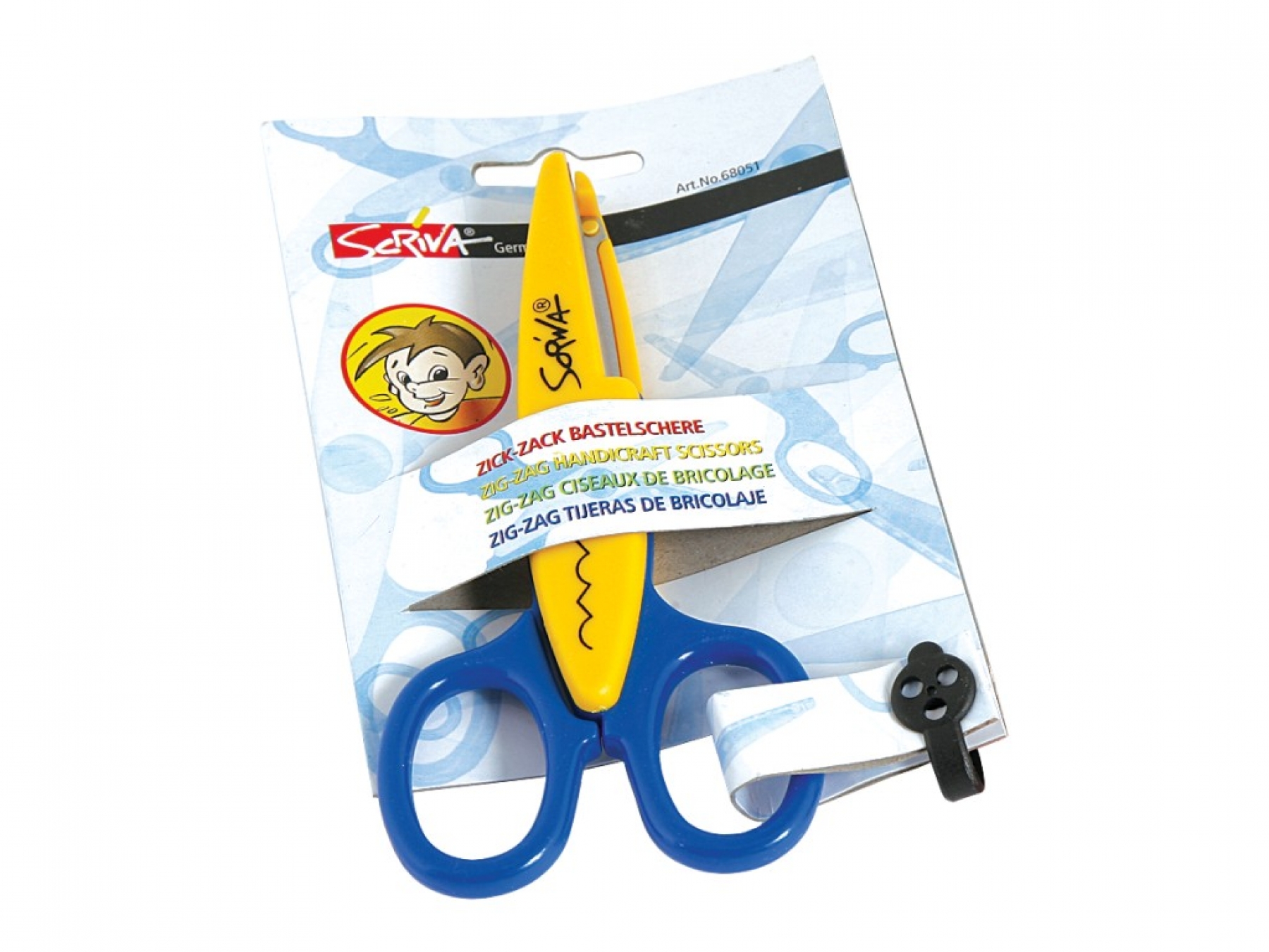 Foarfecă zigzag Scriva cu lamă zimțată din oțel inoxidabil, pentru tăiere în diverse modele, acoperită cu plastic ABS, un material de 30 de ori mai durabil decât plasticul obișnuit.