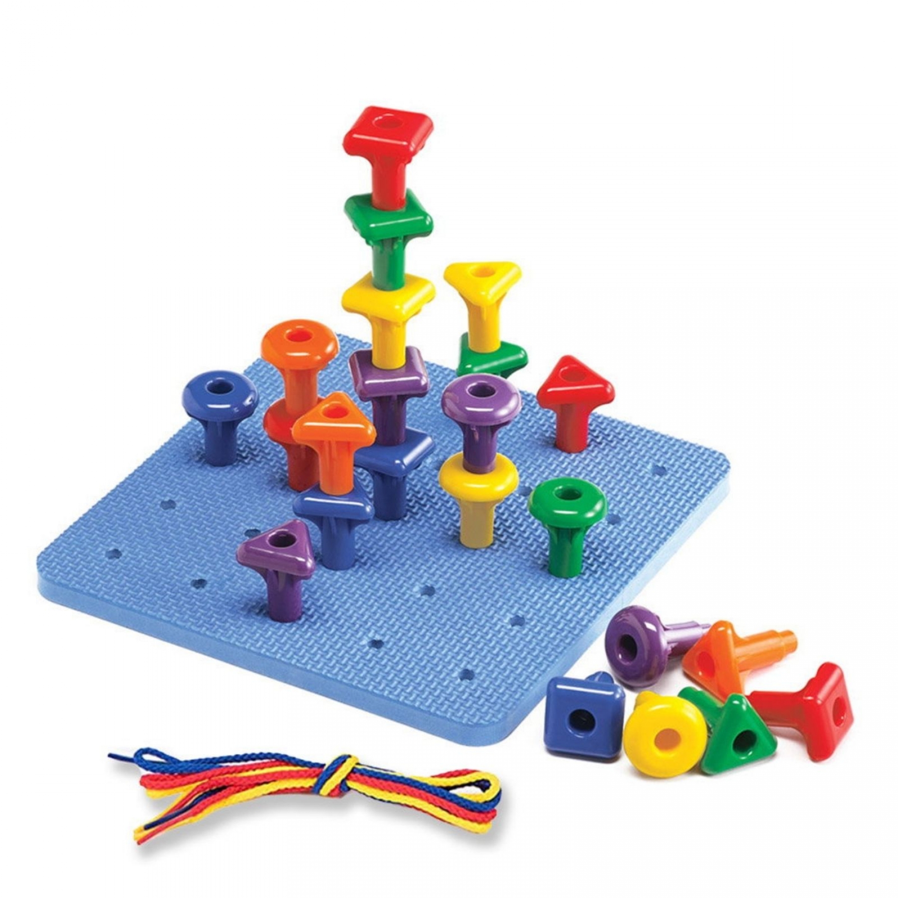 Acest set de motricitate cu 36 de cuie gigant si o plansa de lucru cu gauri este ideal pentru a tine ocupate mainile mici! Micutii vor fi incantati sa manipuleze cuiele mari colorate, sa le infiga in gaurile din placa de lucru si sa le scoata afara sau sa le stivuiasca unu peste altul, pentru a crea diferite modele, in timp ce isi vor exersa abilitatile de sortare, stivuire, numarare si creare de modele. Placa dreptunghiulara din spuma tare va incuraja copiii sa creeze diferite modele. Setul contine: 36 de cuie gigantice stivuibile din plastic (in 6 culori intense si 3 forme), 1 plansa de lucru patrata cu gauri, realizata din spuma si 3 sireturi colorate. Cuiele au dimensiuni potrivite mainilor mici ale copiilor si margini rotunjite si sunt fabricate din plastic rezistent de inalta calitate, iar plansa de lucru este fabricata din spuma EVA groasa. Toate produsele Edx Education respecta standardele de siguranta ASTM si CPSC. Setul este ideal pentru dezvoltarea abilitatilor motorii fine, coordonarii ochi-mana, abilitatilor de numarare, sortare, stivuire, recunoastere a formelor si culorilor, creare de modele, insiretare si gandire creativa. Dimensiune placa de joc: 21 x 21 x 1 cm Dimensiune set: 23 x 5 x 23 cm Varsta recomandata: 18 luni+ [embed]https: youtu.be 3vIEcKbptrU[ embed]