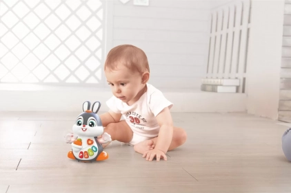 Iepurasul dansator interactiva de la Hola Toys este gata de joaca! Apasa butonul de pe capul lui si iepurasul incepe sa se miste, sa cante, sa dea din maini si i se aprind luminite. Muzica si culorile vii sunt atractive pentru cei mici care nu se vor plictisi usor de aceasta jucarie. Iepurasul are cinci butoane care activeaza diverse actiuni ale jucarei. Acestea pot declansa sunete de pisicuta, diverse melodii sau un sunet care imita bataile inimii. Sunetul poate fi ajustat pe mut daca vreti ca cel mic sa se joace in liniste. Atunci cand canta, iepurasul stie sa clipeasca. Toate aceste optiuni fac ca jucaria sa fie extrem de realista si interectiva. Varsta recomandata: 1 an+ Dimensiuni ambalaj: 18 x 12.4 x 23.4 cm
