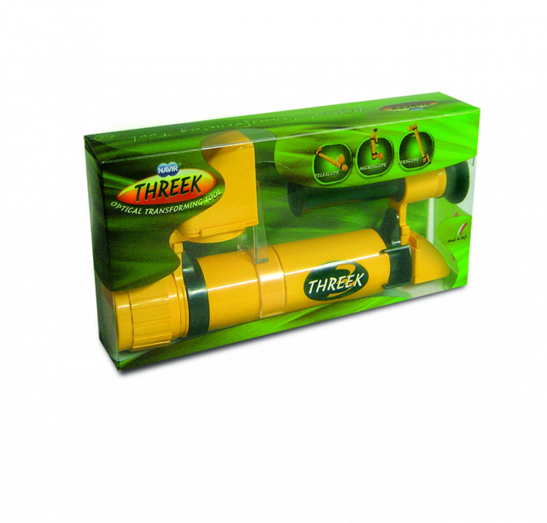 Instrument optic 3 in 1 Telescop, Periscop, Microscop Instrument optic ingenios care, prin miscari simple, se transforma in TELESCOP, MICROSCOP si PERISCOP Dimensiuni: 23.5 x 12 x 5 cm Varsta recomandata: + 6 ani Fabricat din plastic ABS (rezistent la impact, la temperaturi ridicate si la contactul cu substante chimice) si plexiglas. AVERTISMENT: Contraindicat copiilor sub 3 ani. A se utiliza sub supravegherea unei persoane adulte. Produs de Navir, Italia.