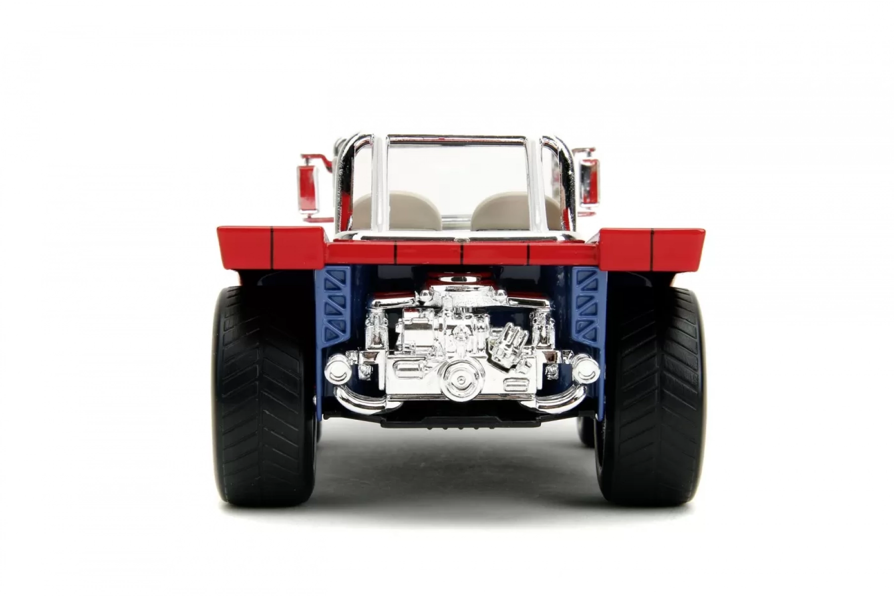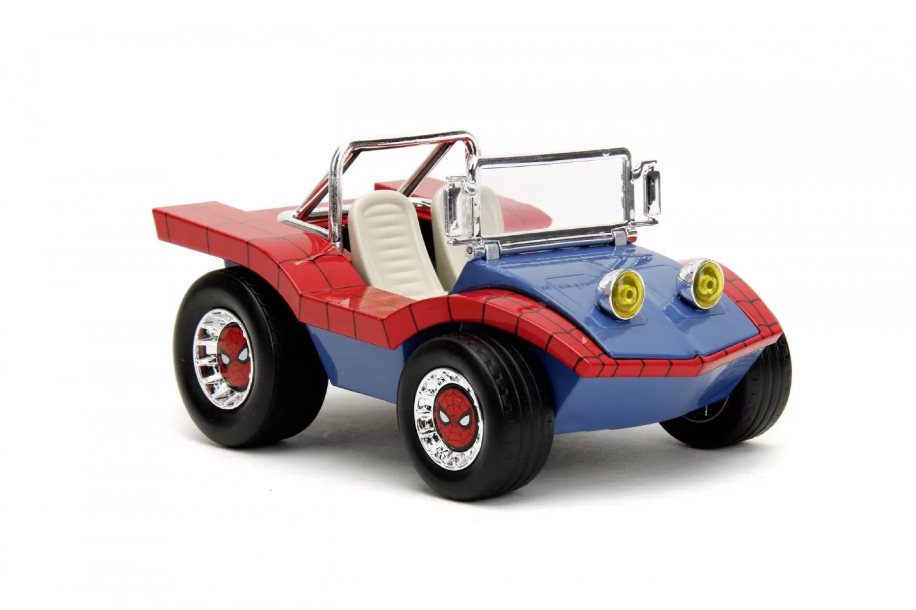 Direct din benzile desenate vine buggy-ul Spider-Mobile al lui Spiderman. Cu un acoperis deschis, si roti din cauciuc, Spiderman poate conduce pe strazile din New York. Acest model la scara 124 vine completat cu o figurina Spiderman din metal, inaltime 6 cm.