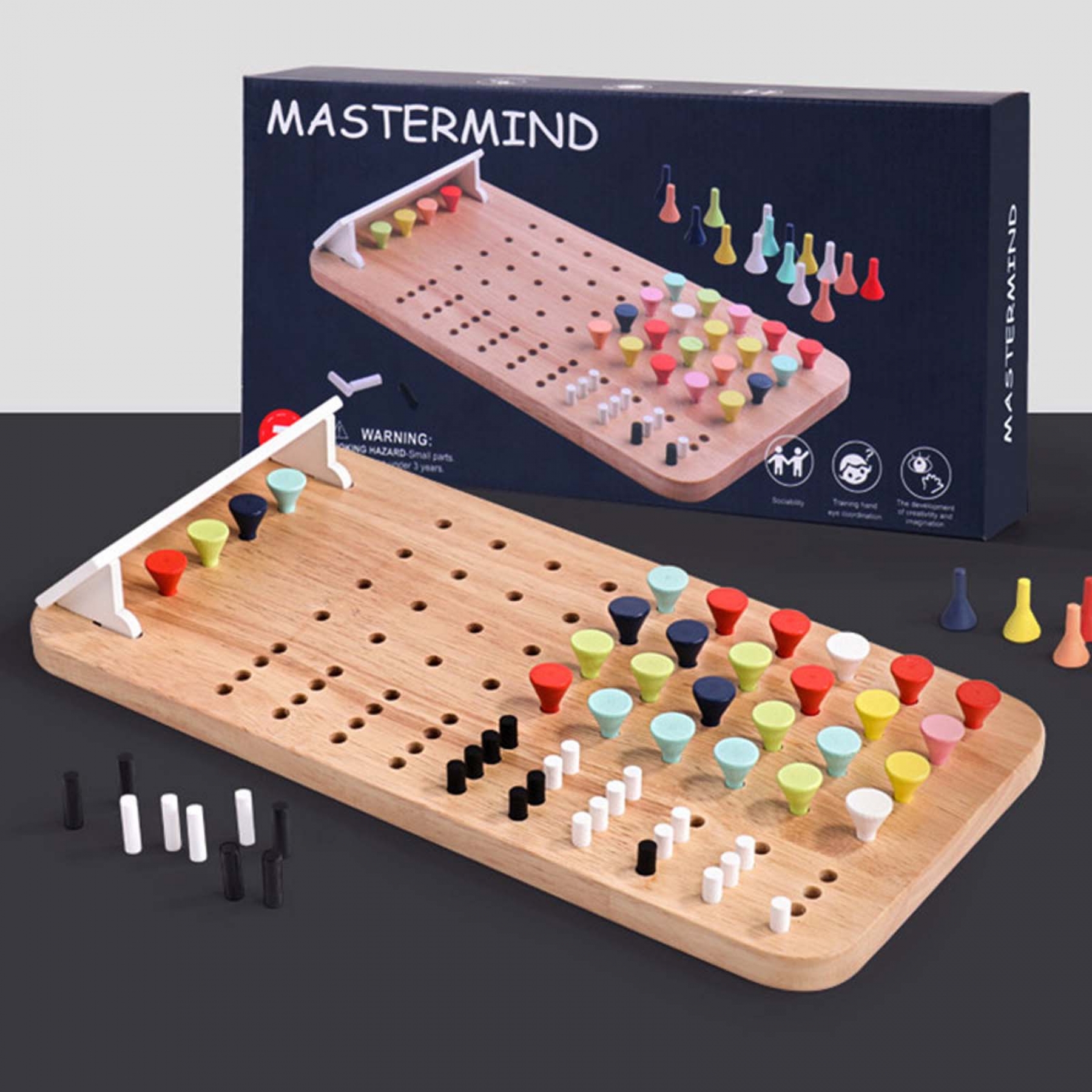 Joc de societate, tabla de sah din lemn cu pioni colorati, 2 jucatori, 146 de piese, BoardGames, 33.5 x 17 x 1.5 cm, 5 ani+ Un joc de logica si strategie pentru 2 jucatori,adulti sau copii,descifreaza parola creata pentru a rezolva jocul. Tabla de sah este special conceputa pentru cei 2 jucatori,dezvolta capacitatea de gandire strategica,dar si logica. Acest joc necesita 2 jucatori,unul pentru formarea parolei(designerul) si apoi acoperirea parolei,iar descifratorul incepe sa ghiceasca. Pentru fiecare incercare a descifratorului, designerul ar trebui sa ofere raspunsuri corespunzatoare,iar descifratorul isi va schimba rolul dupa obtinerea parolei corecte. Pionii negri reprezinta culoarea si pozitia corecta a unei piese de sah Pionii albi indica faptul ca o piesa de sah are culoarea corecta, dar este plasata intr-o pozitie gresita Continut pachet: 1 x tabla de sah din lemn cu orificii special concepute 1 x placa de acoperire,special pentru jucatorul care formeaza,creaza parola 40 x de pioni , alb si negru 104 x pioni (13 x 8 culori) Caracteristici: Varsta recomandata: 5 ani+ Pentru: Fete Baieti Material: Lemn vopsit cu substante non-toxice Numar jucatori: 2 Culoare: Multicolor Dimensiuni placa: 33.5 x 17 x 1.5 cm Avertismente! Nu lasati ambalajele jucariilor produselor la indemana copiilor. Indepartati orice ambalaj al jucariei produsului inainte de a da jucaria produsul copilului. Va rugam sa supravegheati copilul in timp ce se joaca foloseste acest produs. Pastrati instructiunile si etichetele pentru referinte viitoare. Pastrati jucaria produsul departe de foc, feriti jucaria produsul de temperaturi ridicate si umiditate. Imaginile au caracter informativ. Nuanta, tonul si intensitatea culorii pot varia in functie de monitor.