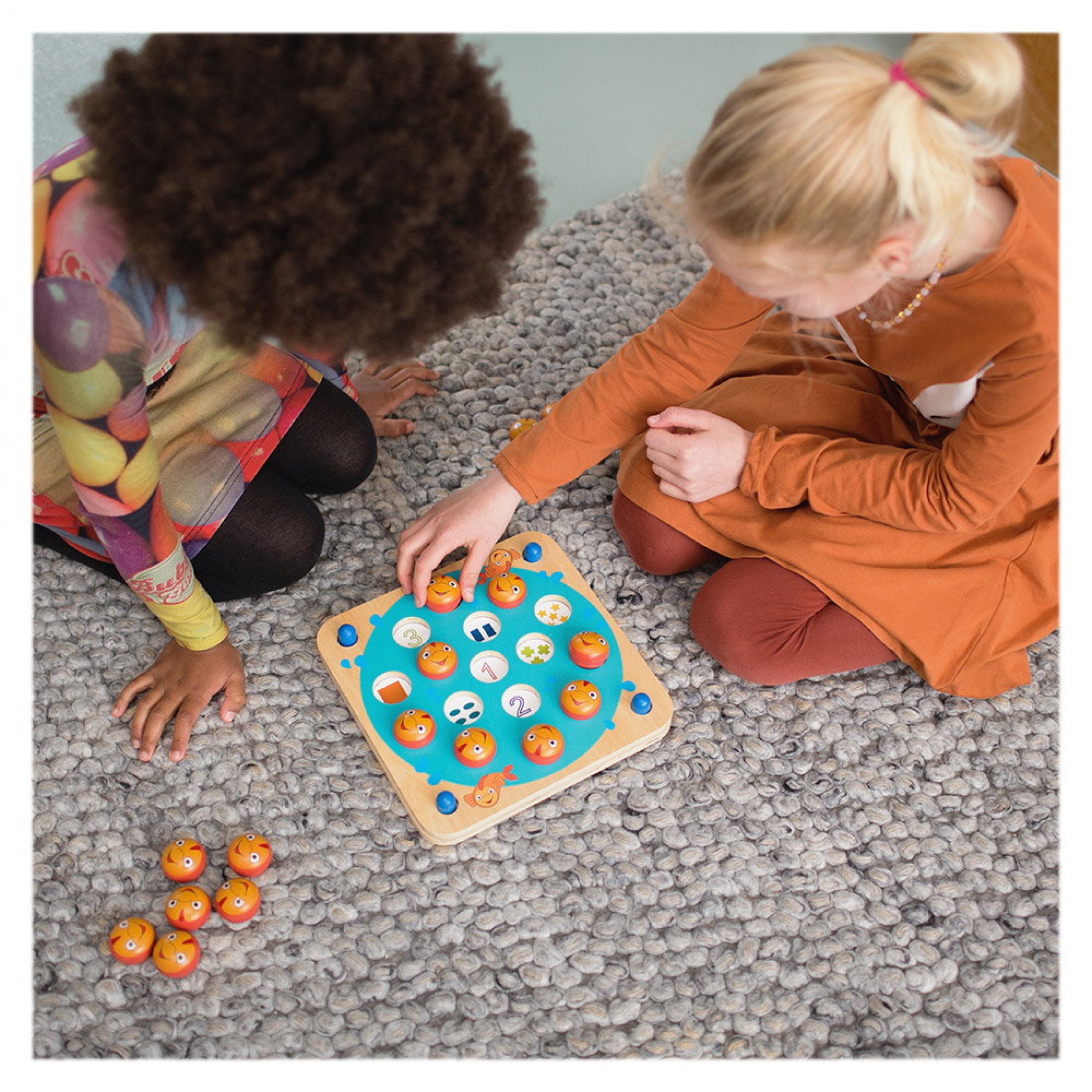 Acest joc de memorie interesant ii va mentine pe copii implicati ore in sir! Jocul contine opt jocuri diferite de memorie, captivante si educative. In acest joc distractiv si usor de jucat, jucatorii trebuie sa ridice pestii si sa incerce sa gaseasca doua ilustratii care se potrivesc impreuna. Pentru a juca un alt joc, trebuie schimbate cardurile. Jocul contine: 16 pesti dragutidin lemn, 4 carduri din carton gros lucios, imprimate fata-verso(cu dimensiunea de 26 x 26 cm), si o tabla de joc din lemn. Jocul constituie o modalitate excelenta de a dezvolta abilitatile de concentrare, memorie, atentie si observare. Incurajeaza sesiunile de joc interactive si dezvolta abilitatile de socializare. Poate fi jucat de 2 pana la 4 jucatori. Dimensiune: 26 x 26 x 4 cm Varsta recomandata: 3 ani+ Avertisment! Contraindicat copiilor mai mici de 3 ani. Jucaria poate contine piese mici care se pot inghiti sau inhala existand pericolul de accidente. Nu lasati ambalajele produselor la indemana copiilor.