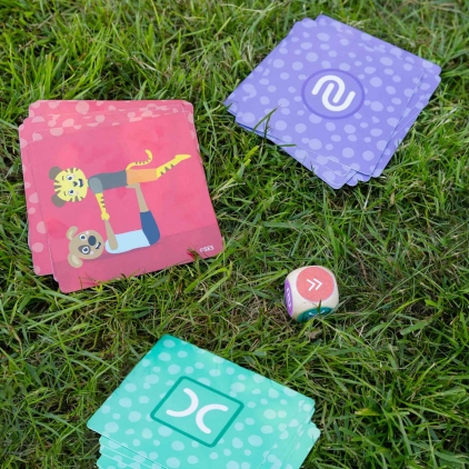 Copiii se vor distra la nesfarsit cu animalele acrobate! Un joc activ care este ideal pentru joaca in aer liber. Rotiti zarurile pentru a vedea care dintre cele 27 de carti trebuie executata. Sa ne ridicam unul pe altul? Acest joc incurajeaza jocul activ si munca in echipa si le permite copiilor sa petreaca o dupa-amiaza plina de trucuri cool, precum adevaratii acrobati. Contine: 27 carti de joc; zaruri de lemn; animale acrobate. Dimensiuni: 20 x 20 x 4 cm.