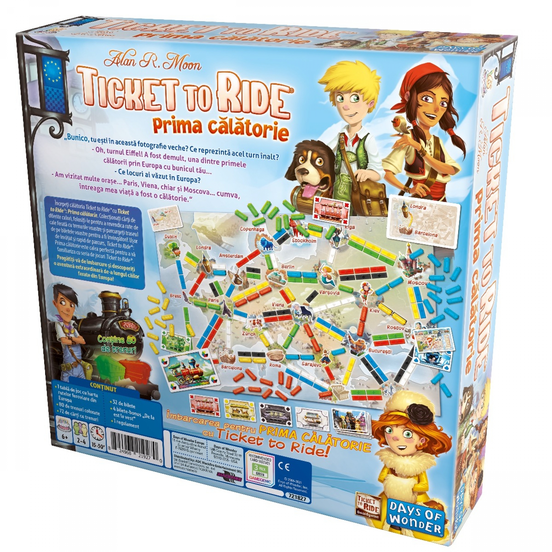 Ticket to Ride: First Journey preia jocul din seria Ticket to Ride si il adapteaza pentru un public mai tanar. Jucatorii colecteaza carti de tren, revendica rute pe harta si incearca sa conecteze orasele afisate pe biletele lor. Tabla de joc arata o harta a Europei, cu anumite orase conectate prin linii colorate. Primul jucator care completeaza sase bilete castiga! Potrivit pentru 2-4 jucatori de peste 6 ani. Durata de joc: 15-30 minute.