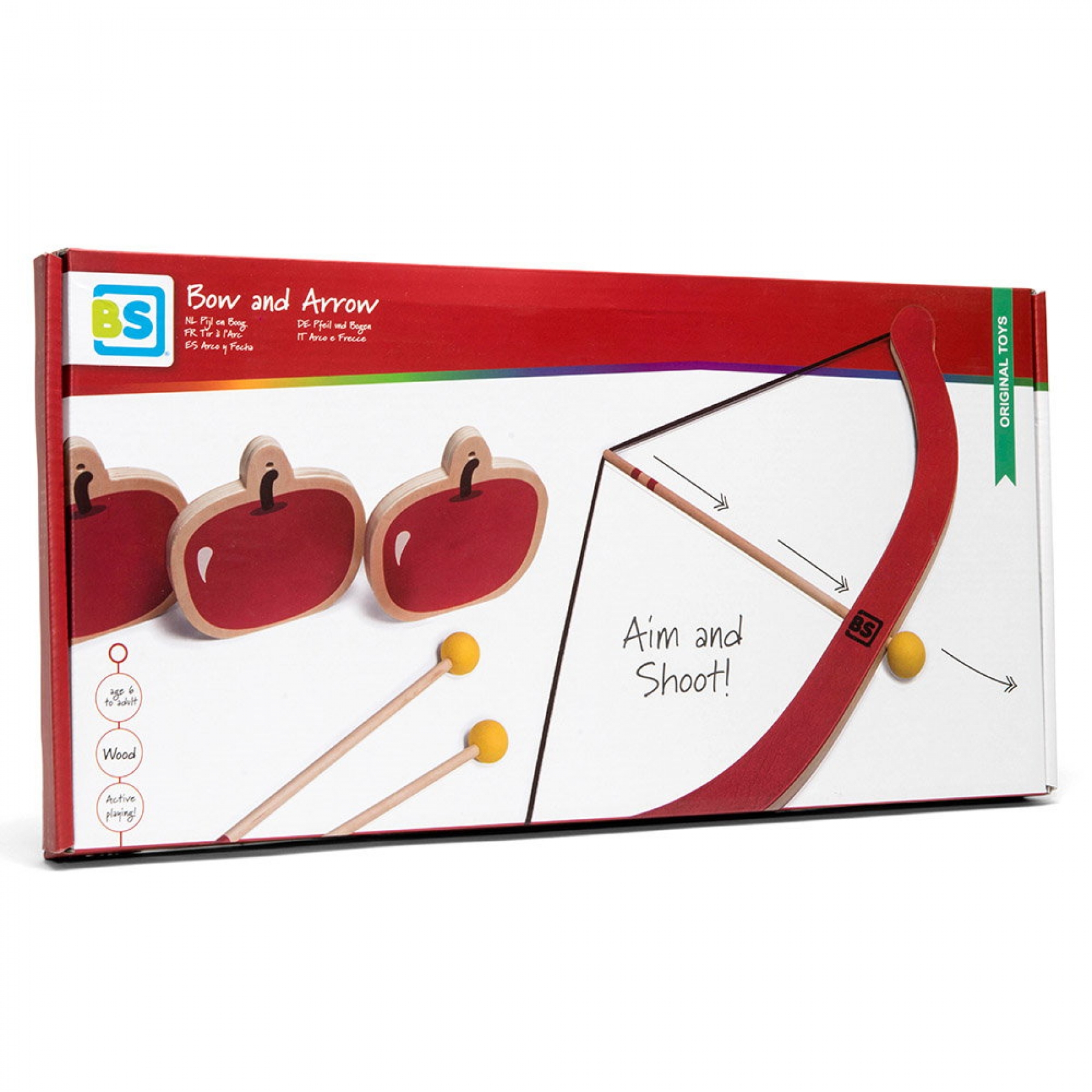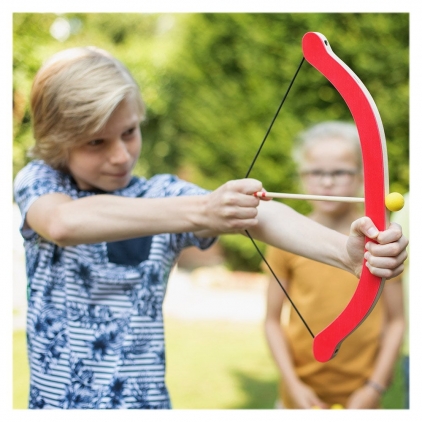 Cu siguranta nu ai vrea sa ratezi cele trei mere rosii apetisante! Pune sageata in arc, intinde coarda si tinteste-le! Testeaza-ti indemanarea si abilitatile de tras la tinta si dovedeste ca esti un bun urmas al lui Robin Hood! Acest set de joaca cu arc si sageti de la BS Toys include: 1 arc din lemn, 3 sageti cu varfurile rotunjite, 3 tinte din lemn in forma de mar. Pentru siguranta celor mici, sagetile au varfurile rotunjite si moi. Jocul este fabricat din lemn si vopsit cu vopsele netoxice, pe baza de apa. Este destinat jocului atat in interior, cat si la exterior, dar nu este rezistent la apa ploaie sau umezeala. Jocul le va dezvolta copiilor abilitatile de aruncare la tinta, coordonarea ochi-mana, rationamentul vizual, perceptia spatiala, concentrarea, precizia, perseverenta. Dimensiune arc: 45 x 12 cm Dimensiune sageti: 26 x 2 cm Dimensiune mere: 13 x 2x 13 cm Varsta recomandata: 3 ani+ Avertisment! Contraindicat copiilor mai mici de 3 ani. Jucaria poate contine piese mici care se pot inghiti sau inhala existand pericolul de accidente. Nu lasati ambalajele jucariilor la indemana copiilor.