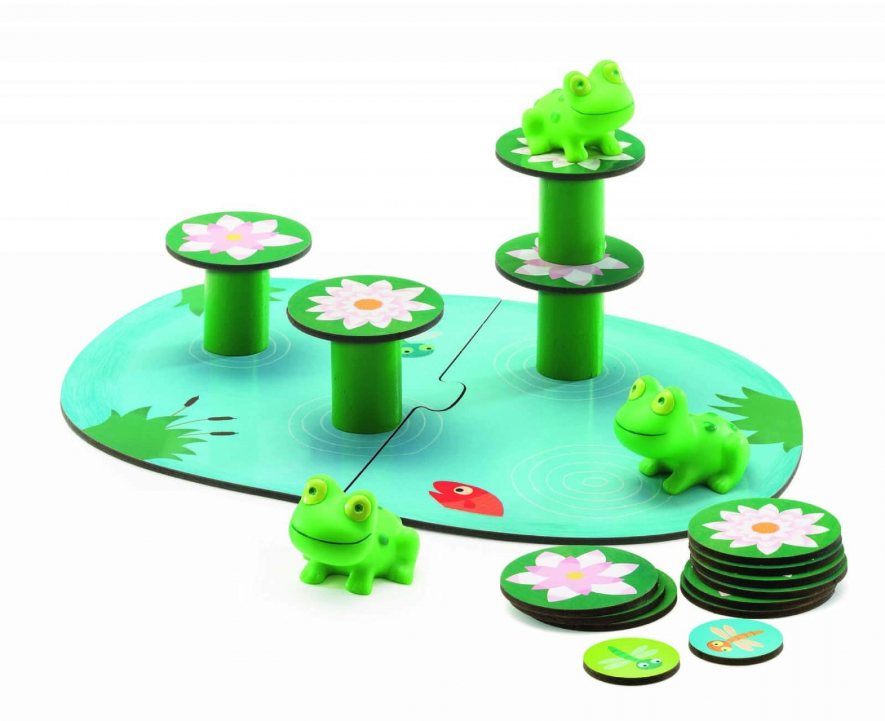 Broscutele trebuie sa stea in echilbru pe nuferii tot mai inalti. Un joc de indemanare si cooperare conceput special pentru cei mici, cu reguli simple si amuzante; incurajeaza comunicarea intre copil si parinte in timpul jocului, jocul cu partener. A se folosi sub directa supraveghere a unei persoane adulte. Varsta recomandata: 2 , 5 ani Producator: Djeco, Franta Confectionat din materiale si vopsele non toxice conform reglementarilor EN71ASTM Avertismente! Jucaria produsul poate contine piese mici care se pot inghiti sau inhala existand pericolul de sufocare sau nu este potrivita copiilor mai mici de 2 ani. Nu lasati ambalajele jucariilor produselor la indemana copiilor. Indepartati orice ambalaj al jucariei produsului inainte de a da jucaria produsul copilului. Va rugam sa supravegheati copilul in timp ce se joaca foloseste acest produs. Pastrati instructiunile si etichetele pentru referinte viitoare. Pastrati jucaria produsul departe de foc, feriti jucaria produsul de temperaturi ridicate si umiditate. Produsul este nou si comercializat in ambalajul original al producatorului. Imaginile au caracter informativ. Nuanta, tonul si intensitatea culorii pot varia in functie de monitor.