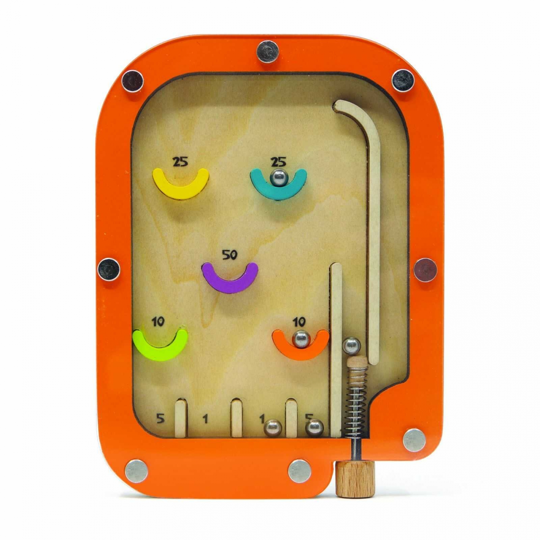 Esti pregatit pentru o provocare Frenzy ? Apasa pe tragaci, lanseaza bilele si incearca sa obtii cel mai bun scor plasandu-le in pozitiile potrivite: acesta este Pinball-ul! Un joc retro clasic Mind-Up care vine sa ne aminteasca de distractia de odinioara a jucariilor simple, dar provocatoare. Este o noua abordare, completata cu lemn, a clasicei jucarii cu flipper care ajuta la imbunatatirea observatiei, a stabilitatii si a preciziei, insotindu-va in timpul liber intr-un mod provocator. Dimensiune 12 Ãmdash; 9 Ãmdash; 1.5 cm Varsta recomandata: + 5 ani. Fabricat din lemn. Conform standardelor EN71, ASTM. Produsul este disponibil in 3 culori: Albastru, Verde si Portocaliu. Alege-ti culoarea preferata! Pretul afisat este per bucata. AVERTISMENT! Contraindicat copiilor sub 3 ani. A se folosi sub directa supraveghere a unei persoane adulte. Producator: Svoora, Grecia