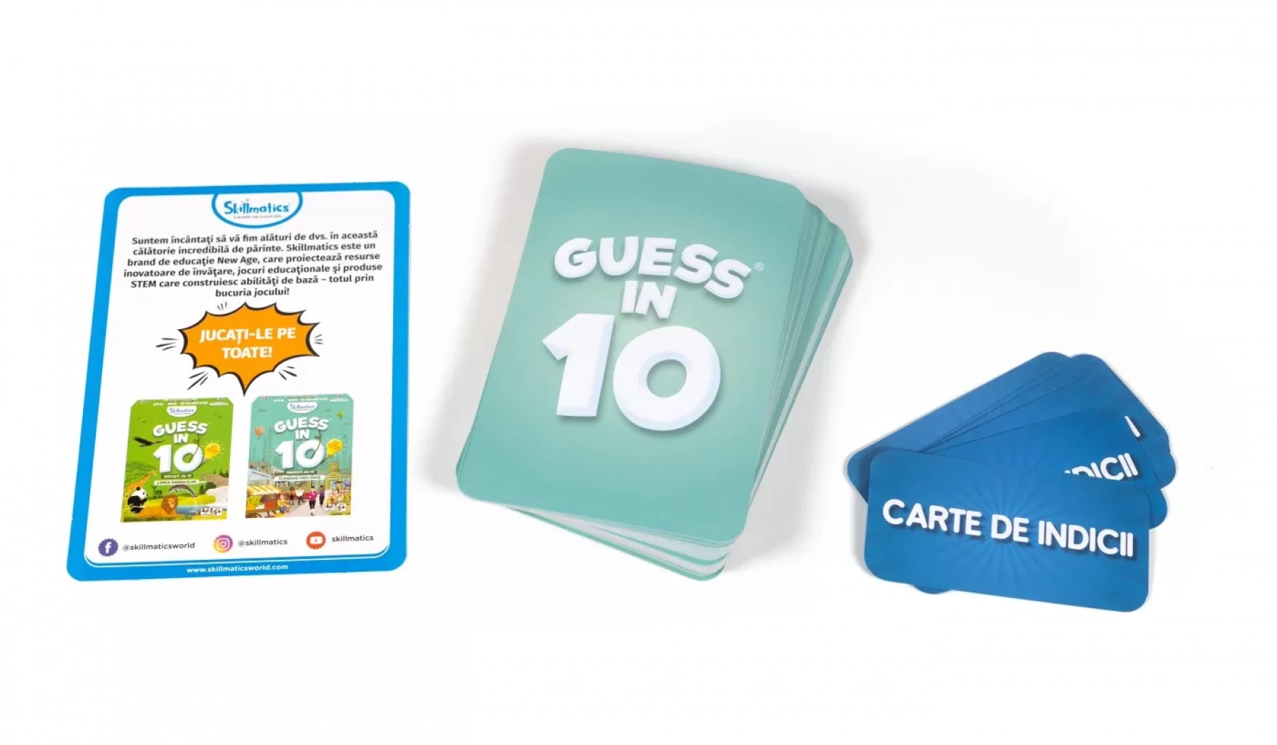 Jocul rapid al intrebarilor inteligente. Ghiceste in 10 provocari din Lumea Oraselor (pentru copiii de 5 ani si peste) punandu-le intrebari care sa ii ajute sa ghiceasca orasele indicate pe cartea de joc. Fiecare carte contine indicii si aluzii care ar putea sa-i invete pe copii (si pe tine) ceva nou! Copiilor le va placea sa isi adune prietenii si sa ii provoace sa identifice locurile de prin oras pe baza unor indicii din doar doua cuvinte. Pentru a castiga jocul, va fi nevoie sa se puna intrebari inteligente. Contribuie la promovarea abilitatilor sociale si de comunicare, la rezolvarea problemelor, la luarea deciziilor si la gandirea creativa. Recomandat pentru 2-6 jucatori, cu varsta de la 5 ani si peste.