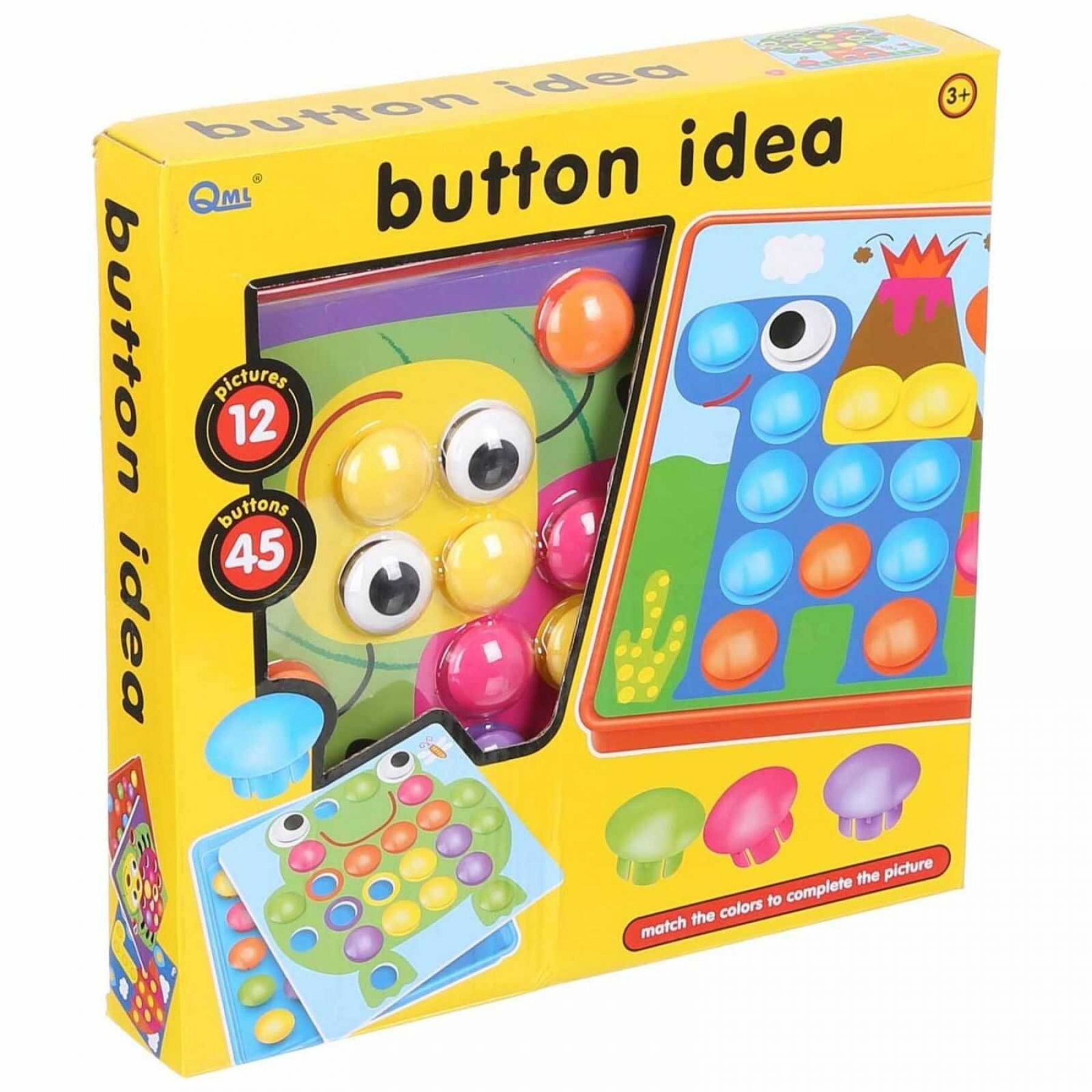 Joc mozaic cu pioneze, piese mari, FantaColor, 3 ani+ Copiii se vor bucura de acest joc de mozaic de dimensiuni mari, cu tabla de joc si piese mari usor de manevrat, potrivite mainilor lor mici. Setul este realizat din plastic de calitate, rezistent si durabil, fiind proiectat astfel incat sa faca fata orelor de joc indelungate, atat acasa, cat in colectivitatile de copii. Jucaria este sigura, cu o multitudine de moduri de combinare a pieselor. Cu ajutorul acestui joc copii pot crea mozaicuri minunate. Este un joc foarte potrivit pentru utilizarea individuala, acasa sau in colectivitati: cresa, gradinita sau activitati after-school. Joc util pentru dezvoltarea abilitatilor de coordonare ochi-mana, a miscarilor fine si a perceperii relatiilor spatiale, invatarea culorilor, intelegerea secventelor si a ordinii obiectelor, iar cei mici se vor amuza inventand propriile modele de mozaic. Jocul Mozaic Creativ Button Idea este compus din: - 12 buc planse de joc pentru a crea modelele de mozaic; - 1 buc tava din plastic pe care se pozitioneaza plansa de joc dar care are si rol de cutie pentru a depozita piesele; - 45 buc piese mozaic de tip peg, diferite culori, cu ajutorul carora se vor compune mozaicurile. Varsta recomandata: 3 ani + Dimensiuni tabla de joc: 26 cm x 26 cm x 4 cm