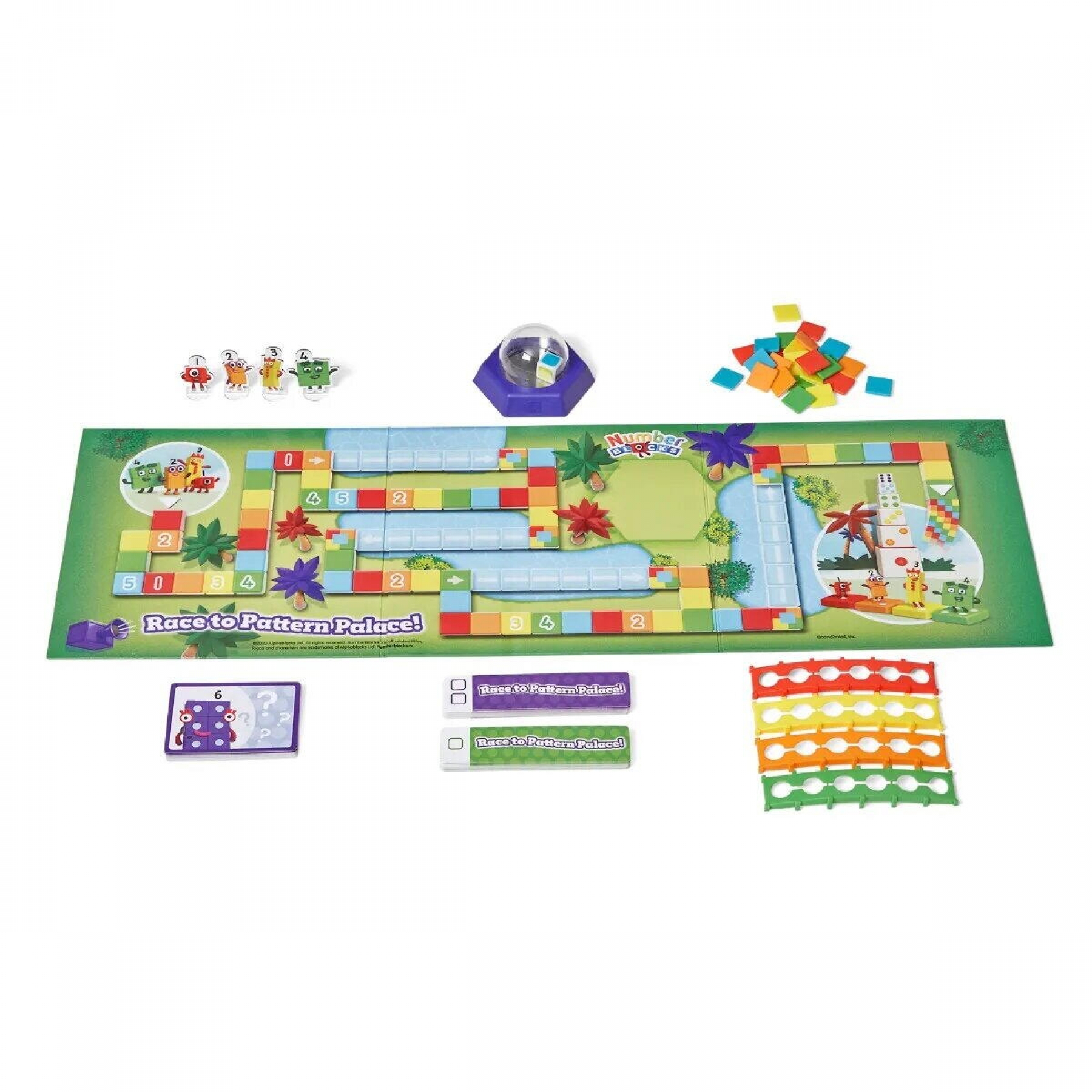 Alatura-te prietenilor tai Numberblocks intr-o aventura colorata! Caracteristici: jucatorii creeaza pe rand modele pentru a debloca calea care duce la Palatul Modelelor; primul jucator care ajunge la finish castiga! jucatorii navigheaza printre rasturnari de situatie in timp ce dezvolta pe parcurs abilitatile de recunoastere a modelelor si a culorilor, de numarare si motricitate fina acest joc este inspirat de unul dintre cele mai populare episoade ale serialului potrivit pentru 2-4 jucatori Setul include: plansa de joc dispozitiv cu zaruri 4 pioni Numberblocks 25 placute plastic pentru Pod 4 poduri 16 carduri cu provocari 40 carduri cu modele ghid in limba engleza Plansa de joc: 70 x 23 cm Dimensiune ambalaj: 25.5 x 24.3 x 6 cm Varsta recomandata: 3 ani+ Atentie! Contraindicat copiilor mai mici de 3 ani. Jucaria produsul poate contine piese mici care se pot inghiti sau inhala existand pericolul de sufocare sau nu este potrivita copiilor mai mici de 3 ani. Nu lasati ambalajele jucariilor produselor la indemana copiilor. Indepartati orice ambalaj al jucariei produsului inainte de a da jucaria produsul copilului. Va rugam sa supravegheati copilul in timp ce se joaca foloseste acest produs. Pastrati instructiunile si etichetele pentru referinte viitoare. Pastrati jucaria produsul departe de foc, feriti jucaria produsul de temperaturi ridicate si umiditate.