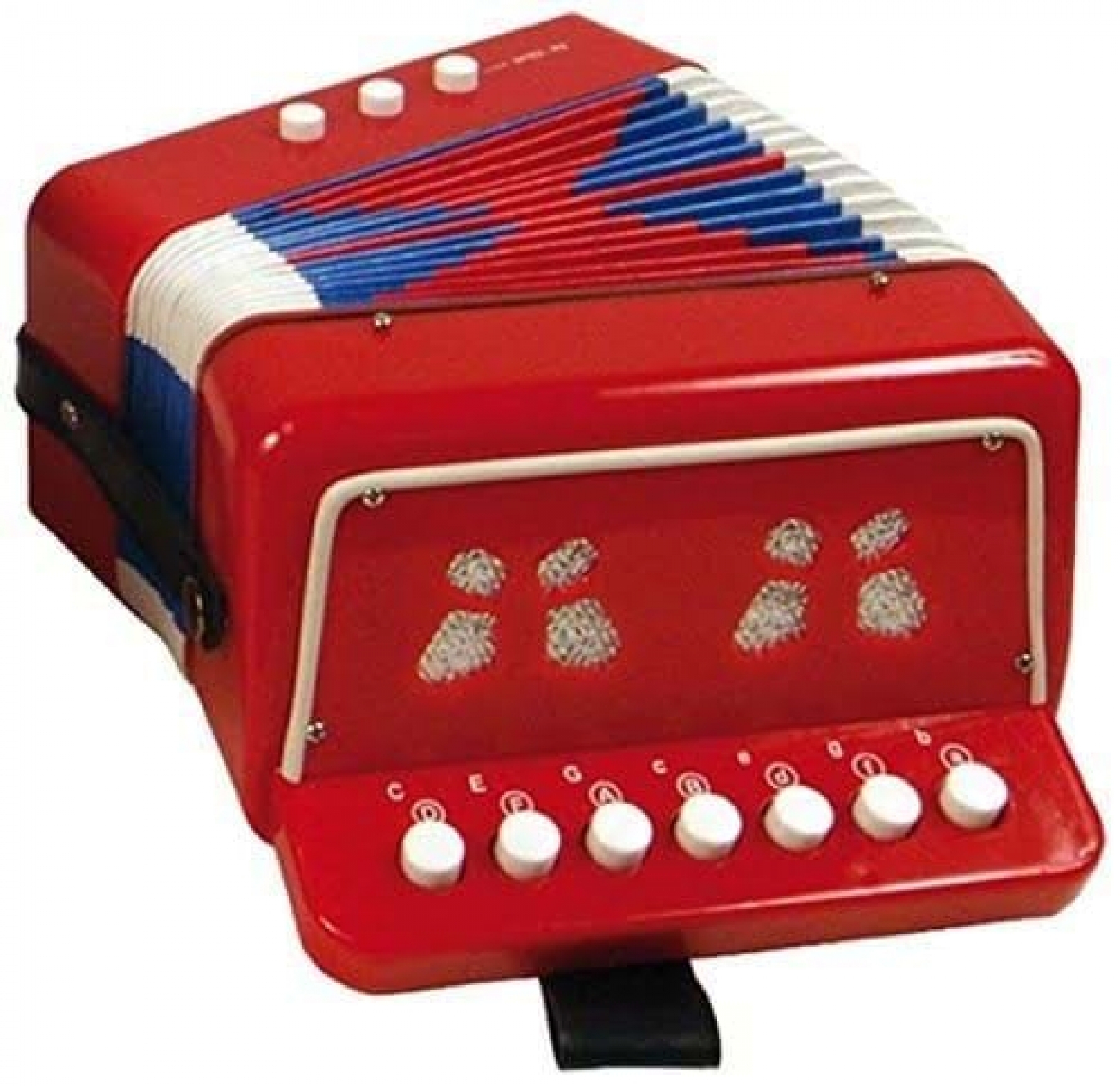 Acordeon din plastic , emite 14 tonuri. Contine: 7 clape 1 buton vulva de aer 1 buton sunet bass 1 buton sunet armonic Dimensiune produs ( deschis): 33 x 15.5 x 10 cm. Produs realizat in Spania. Toate drepturile rezervate. Testat pentru siguranta (CE).