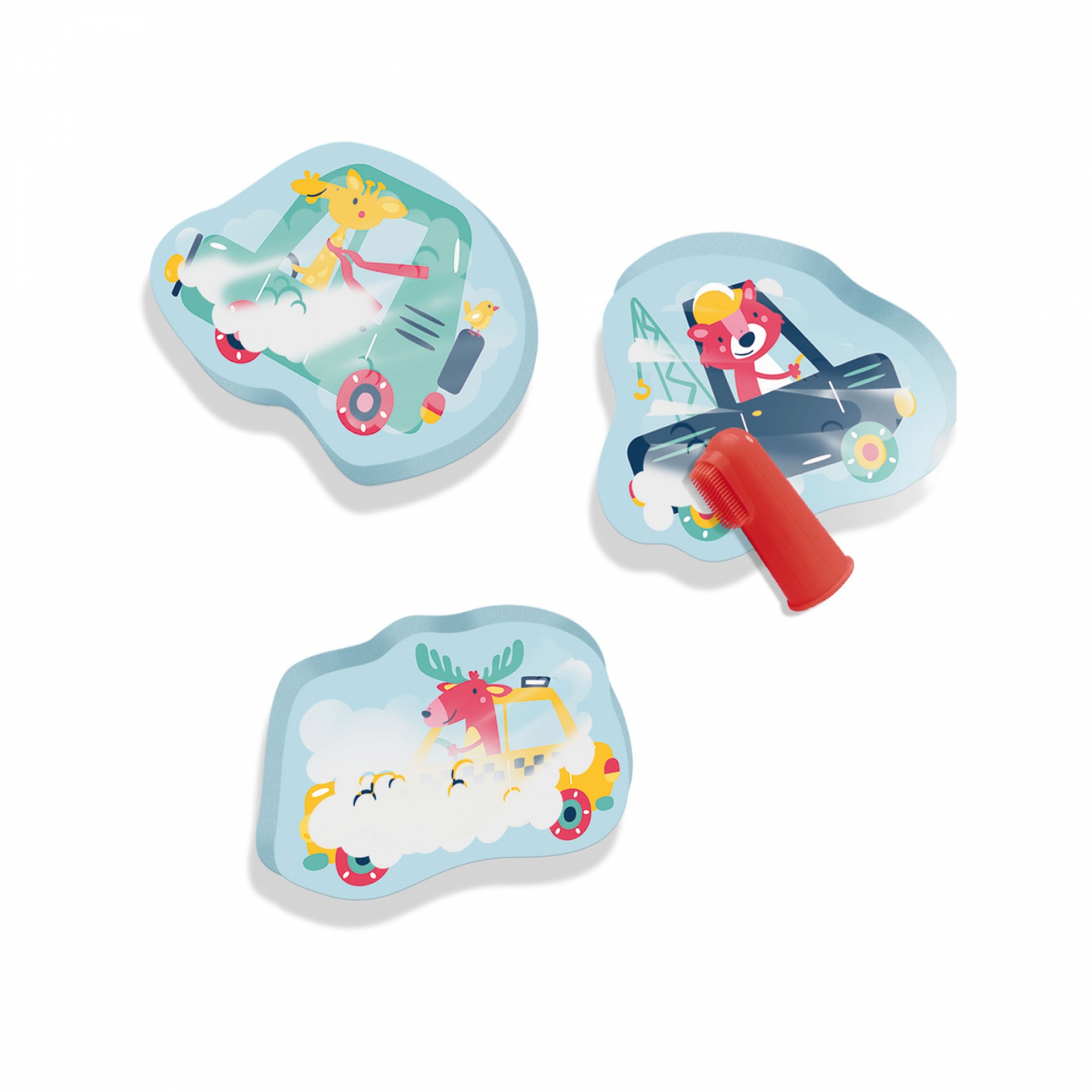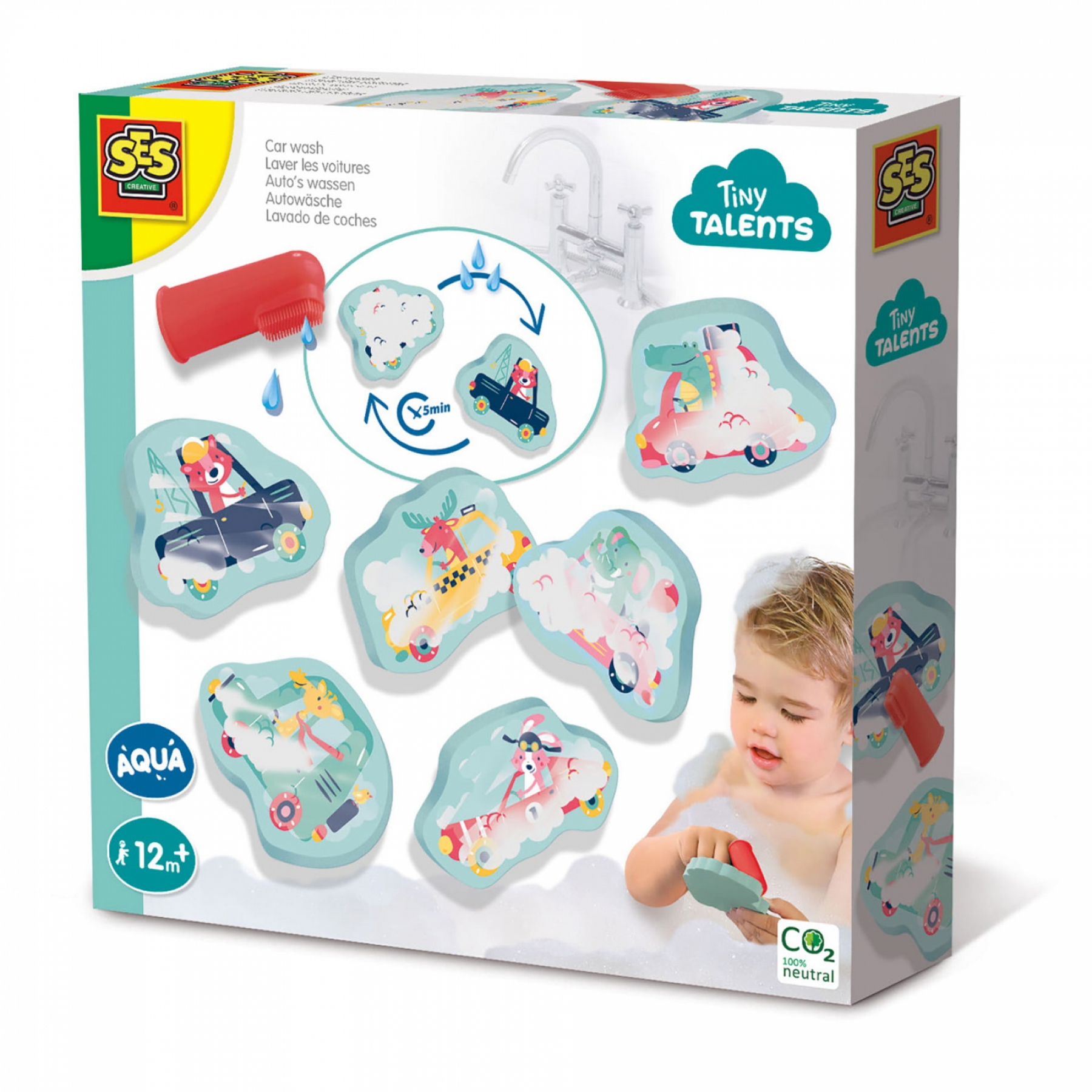 Aceste masini sunt murdare. Ele trebuie spalate urgent. Pentru a le curata, au fost deja puse intr-o spuma cu sapun. Puteti indeparta spuma de sapun cu o perie pentru degete si puteti face sa apara masinile? Fiecare masina are un sofer diferit. Poti afla cine conduce ce masina? Contine: 6 masini de spuma; perie pentru degete. Dimensiuni: 20 x 20 x 4 cm.