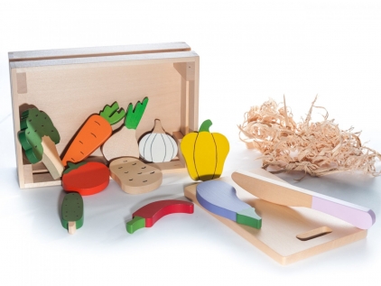 O ladita din lemn cu legume si fructe pentru cei mici. Piesele vor contribui la dezvoltarea functiilor motorii ale micutului tau si de asemenea la recunoasterea culorilor, formelor si a obiectelor , dar si pentru ai starni micutului tau creativitatea, fantezia si cu siguranta pofta de joaca. Caracteristici: Varsta recomandata: 3 ani+. Confectionat din materiale si vopsele non toxice conform reglementarilor EN71ASTM. Se recomanda supravegherea copilului de catre un adult in timpul jocului. Producator: Marc toys, Moldova Avertismente! Jucaria produsul poate contine piese mici care se pot inghiti sau inhala existand pericolul de sufocare sau nu este potrivita copiilor mai mici de 3 ani. Nu lasati ambalajele jucariilor produselor la indemana copiilor. Indepartati orice ambalaj al jucariei produsului inainte de a da jucaria produsul copilului. Va rugam sa supravegheati copilul in timp ce se joaca foloseste acest produs. Pastrati instructiunile si etichetele pentru referinte viitoare. Pastrati jucaria produsul departe de foc, feriti jucaria produsul de temperaturi ridicate si umiditate. rodusul este nou si comercializat in ambalajul original al producatorului. Imaginile au caracter informativ. Nuanta, tonul si intensitatea culorii pot varia in functie de monitor.
