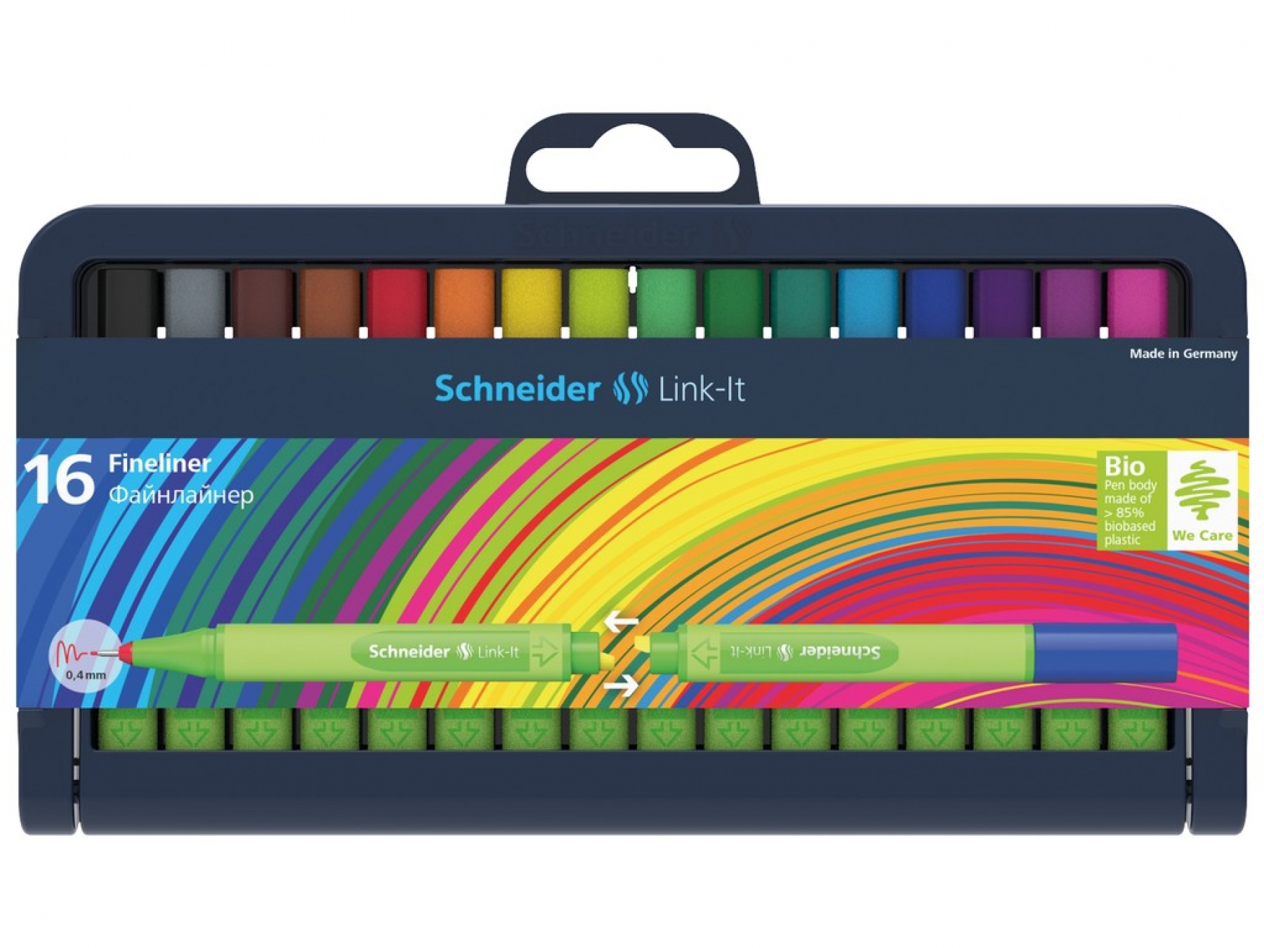 Set Schneider Link-It 0,4 mm cu linere gemene, ideale pentru combinații de scris și desenat!Pentru a se putea prinde, două instrumente de scris Link-It (orice culoare și orice tip de vârf - liner 0,4 sau carioca 1,0 mm) trebuie puse capăt în capăt, cu săgețile pe aceeași parte, și împinse una în cealaltă până se aude click.